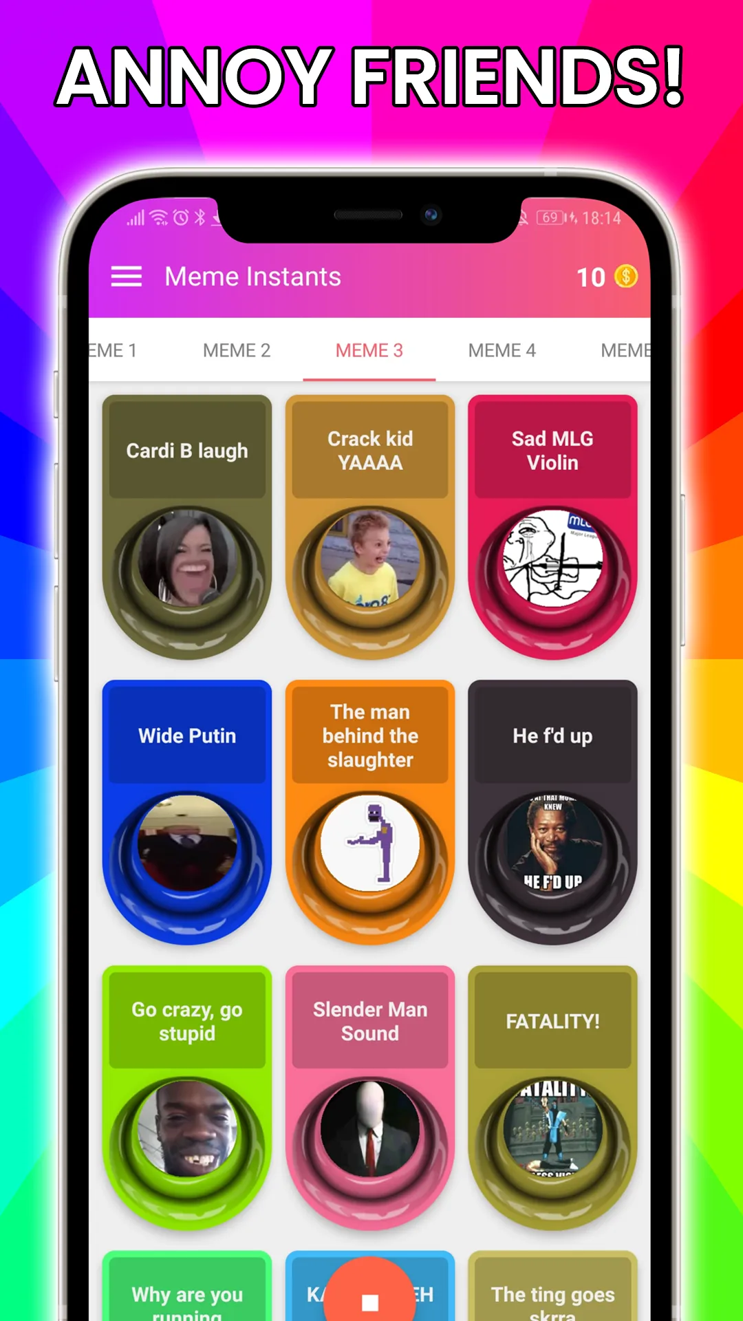 Meme Instants is the easiest way to discover thousands of popular instant meme buttons, with everything from fart sounds to funny adverts, from influencers to old TV shows. Memes, glorious memes. Funny, classic or trending memes - we’ve literally got a button for every occasion. — High-quality sounds — New funny meme sounds added regularly...