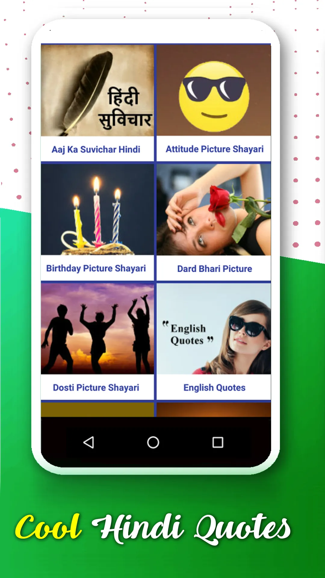 This is a Poster maker, Banner maker, Hindi Picture Shayari maker and quotes creator app. This Free app allows you to download Social media posts and greetings for festivals, hindi shayari, all festival wishes, DP & status, frames, suvichar, sayings, quotes and also create your thoughts, amazing cards or greetings. You can also get stories, God & Goddess mantra, aarti, chalisa, panchang and kathayein to read. You can also get hindi riddles, amazing facts, aayurvedic nuskhe, home remedies. 🔔 App Features 🔔 ...