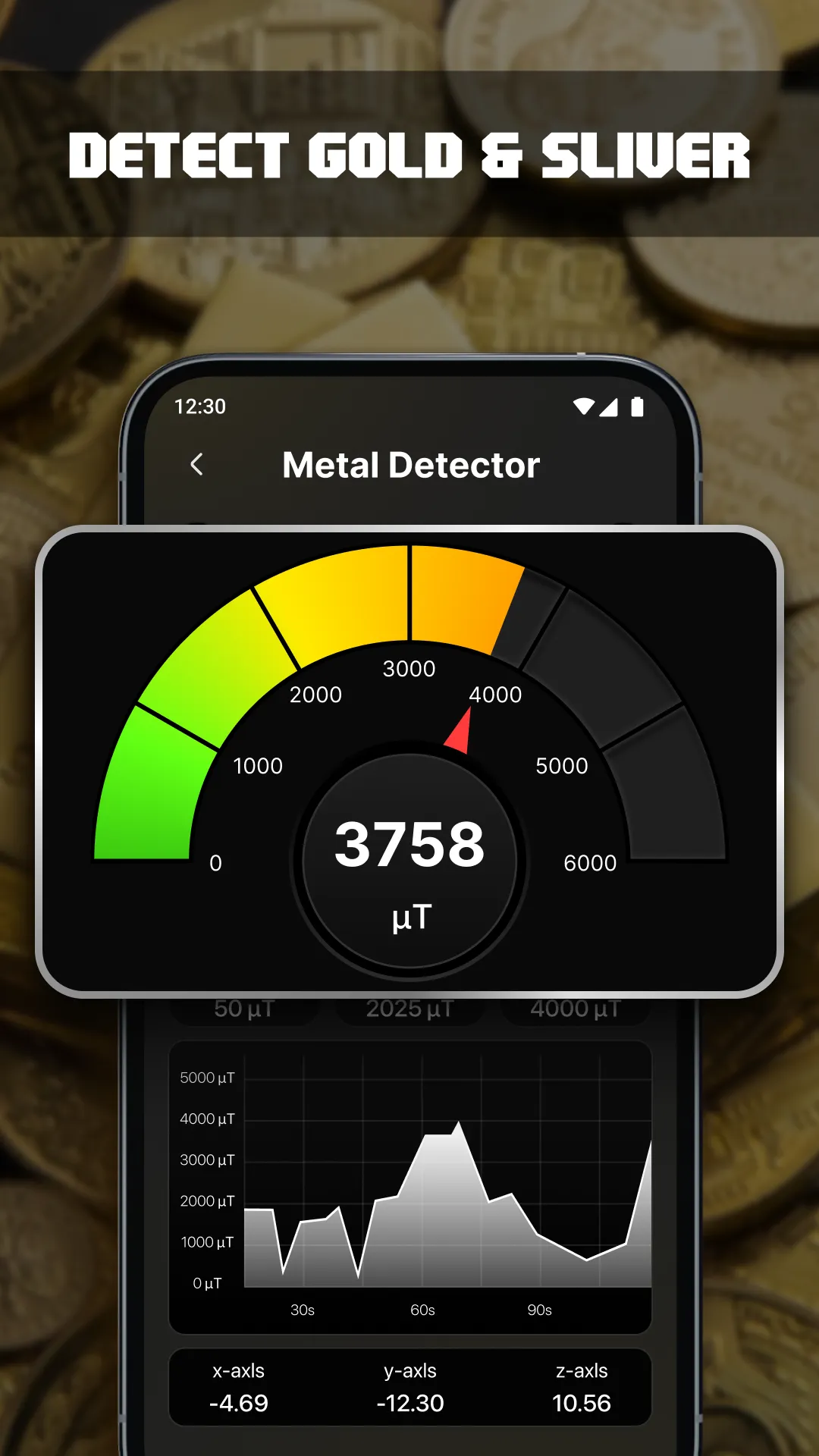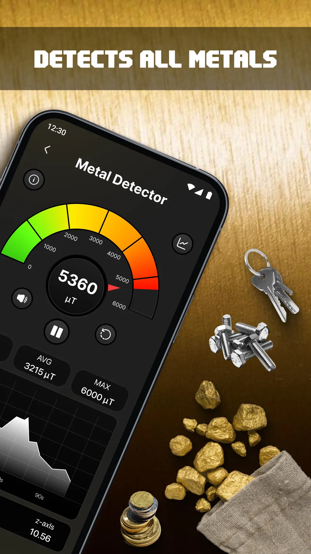 Are you struggling to find lost metal items? The Metal Detector app can assist you in locating keys, coins, jewelry, gold and more. It helps you quickly and accurately search for metal objects. With Metal Detector - Gold Finder, you can transform your smartphone into a metal detecting device. Using cutting-edge technology, the app detects metal objects within the allowed range, aiding you in locating lost coins or valuable artifacts. Simply launch the app and start scanning areas to detect hidden metal items. Key Features of Metal Detector:...