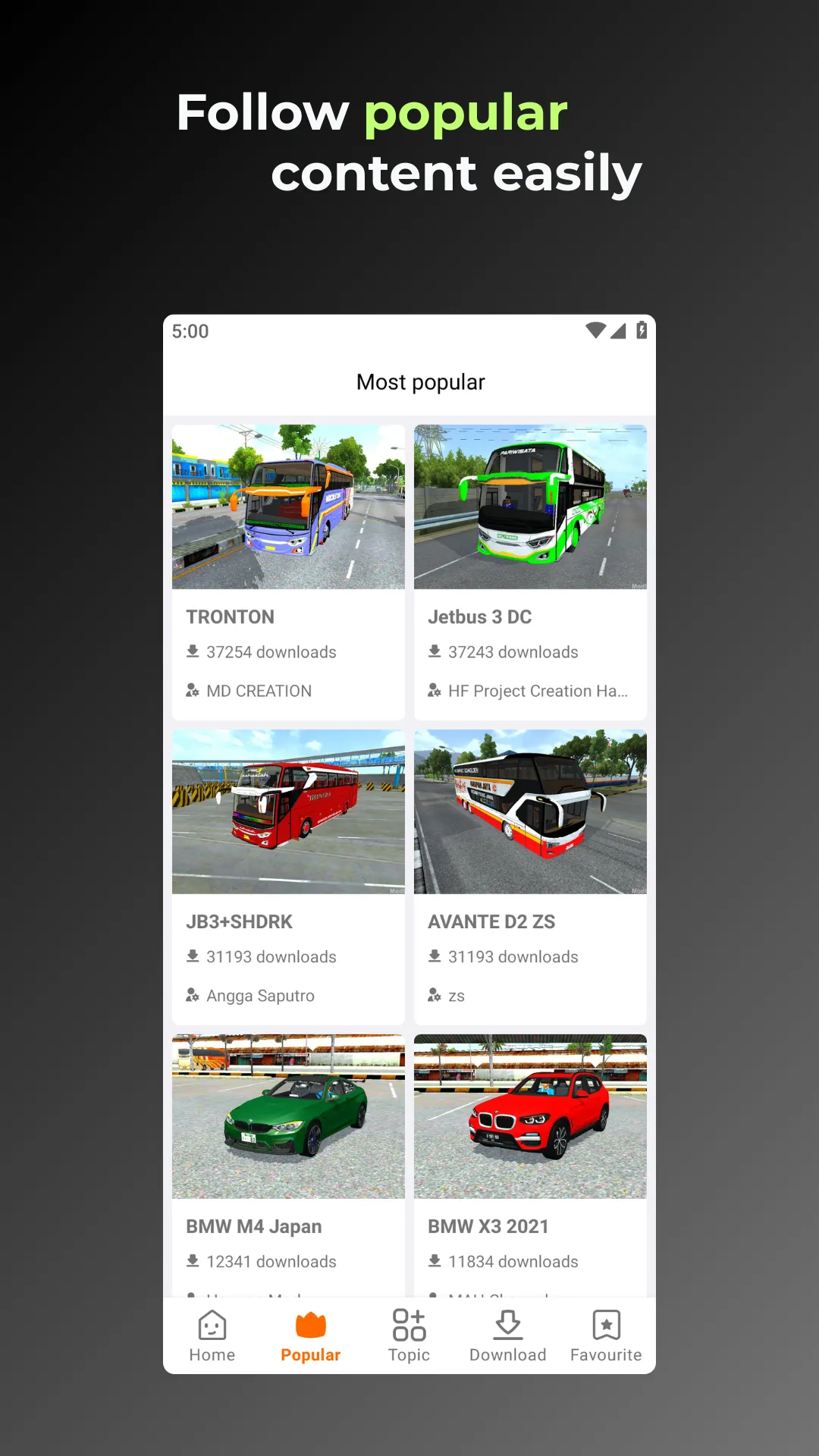 Experience the world of Bus Simulator Indonesia (Bussid) your way with Mod Bussid, the official app from modbussid.io. Mod Bussid offers over 1,000+ high-quality mods, updated daily with fresh content so you always have something new to explore. Key Features: -📥 Easy Downloads: Fast and completely free for all mods....