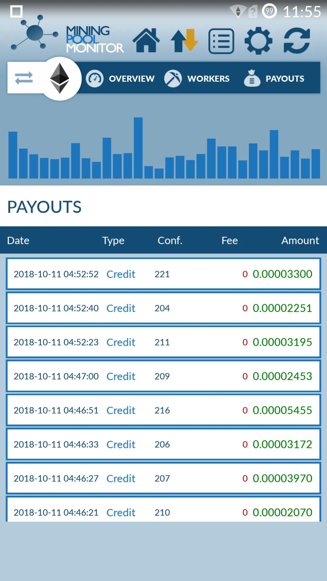 Mining Pool Monitor for Miningpoolhub Unofficial application for checking your mining on Mining pool hub pools. Have overview on your cryptocoin mining rigs from mobile. Check your current hashrate, various payments, efficiency, workers list and other useful information of your mining on miningpoolhub(com) service. Application shows statistics of your account on selected pool. Just insert your respective address/wallet and choose right pool. Autoexchange support. ...