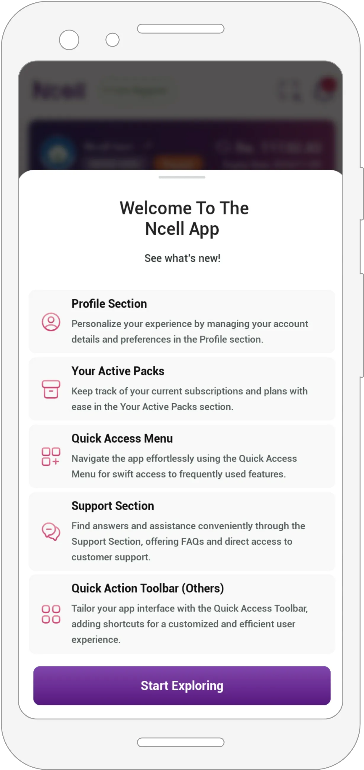Ncell app provides you broad range of information, product, services and many more. You can do Online Recharge, Check Remaining Data, Buy Data Packs, Send 10 free SMS everyday, check call details and find offers specially designed for you. Ncell application is free to use within Ncell network without any data charge. Ncell Store Locator map and redirected pages will be charged as per standard data tariff....