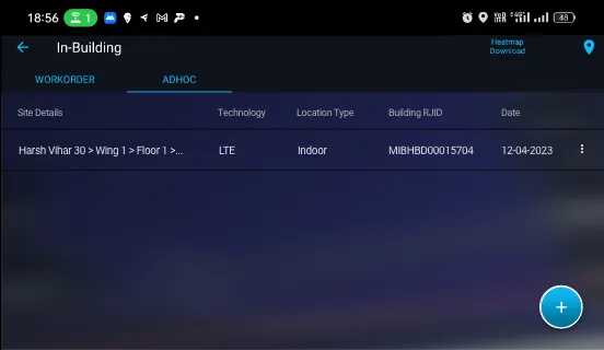 Inbuilding application for installation survey, walk test and preparation of coverage heat map.