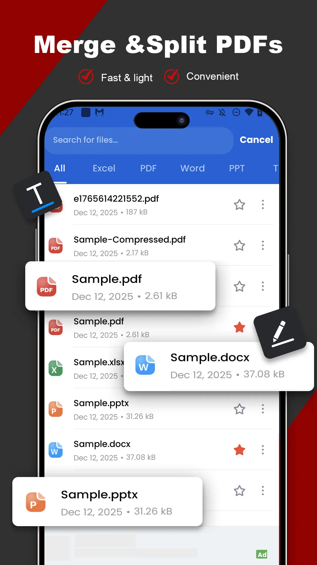 PDF Reader - PDF Tools is a lightweight document reader and PDF toolkit for mobile. Open common office files quickly, and use built-in tools to merge, split, compress, convert, and protect PDFs—perfect for study, work, and everyday document tasks. Supported formats: PDF, Word (DOC/DOCX), Excel (XLS/XLSX), PPT (PPT/PPTX), TXT. PDF Tools • Merge PDFs: combine multiple PDFs into one file...