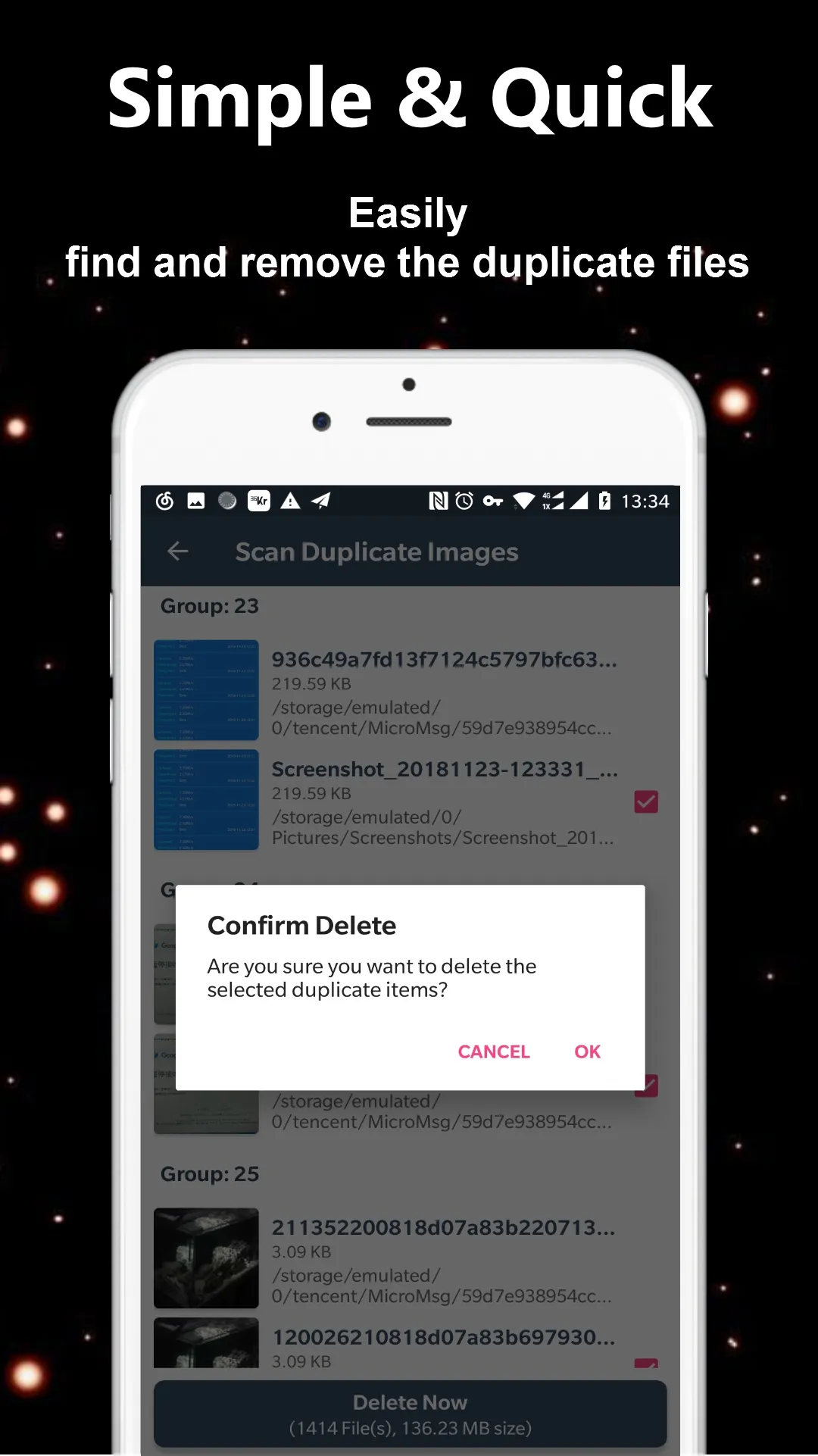 Phone Cleaner is a android phone cleaner and storage file cleaner app(empty folder cleaner, duplicate file remover, deleting large files and apk manager etc.). Our clean my android app is very useful storage cleaner, file and folder cleaner to remove junk files such as duplicate files, empty folders, apk files and large files. Key Features: ★★Delete Duplicate Files★★...