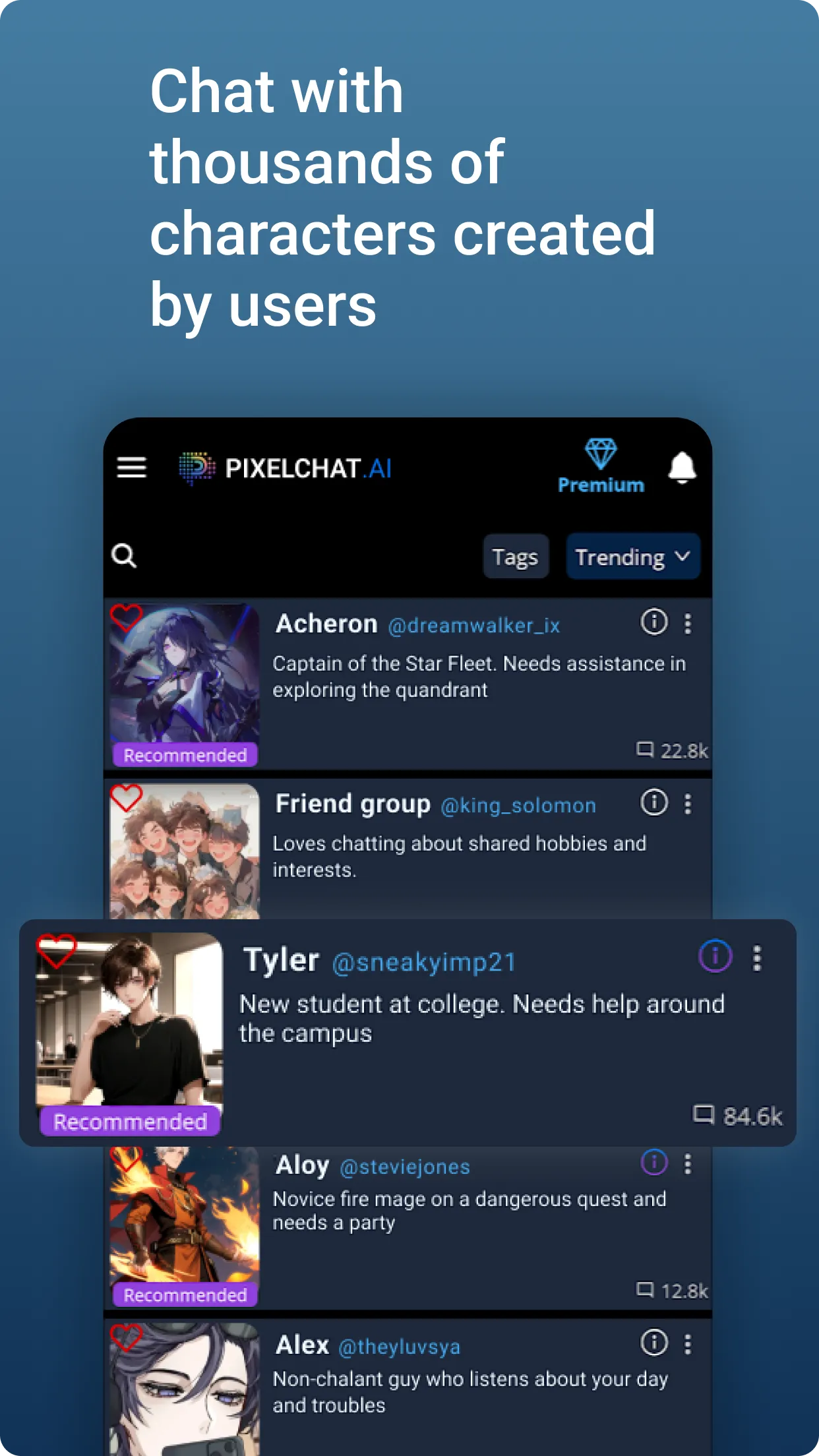 Welcome to PixelChat, the platform where your imagination meets advanced AI technology, bringing conversations to life. Whether you're role-playing or storytelling, PixelChat provides an immersive platform to create personalized AI bots and engage in dynamic, text-based dialogues. Bot Creation Tool: Design Unique AI Characters PixelChat’s Bot Creation Tool lets you create your own AI characters with customizable personalities, dialogue styles, and backstories. Whether your bot is serious, quirky, or completely fictional, the tool gives you control over how they behave in conversations. This flexibility allows for endless creativity, making each bot personal and unique. Dynamic AI Conversations: Engaging and Evolving...