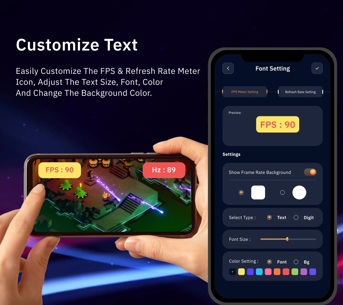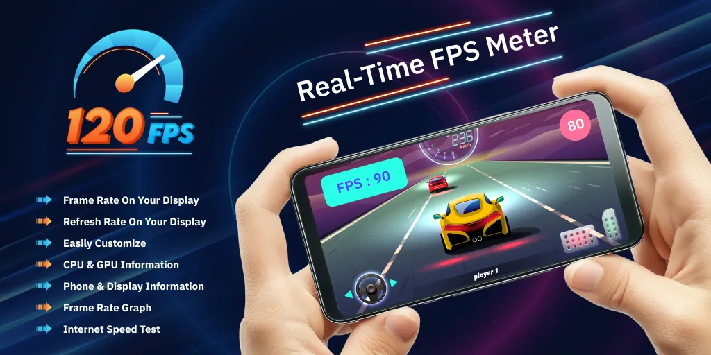 Display FPS Real-Time FPS Meter 🎮🎮 Real-time performance information and customization for your device. Real-Time FPS Meter helps to show FPS rate 🎮 on phone screen in real-time. You can shows customizable real time display frames per second (FPS) anywhere on screen 📱📱. A real time screen refresh rate with portrait and landscape mode....