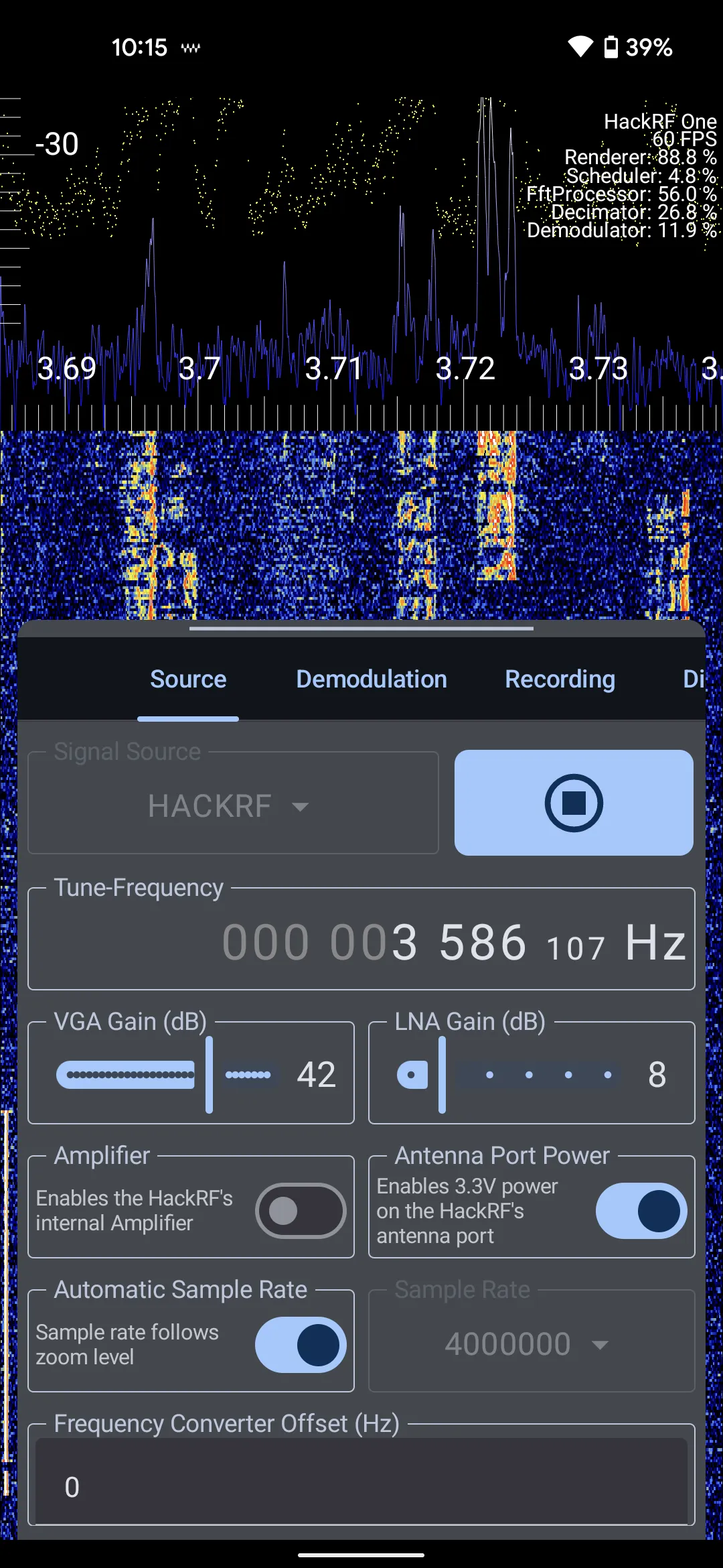 RF Analyzer turns your Android device into a real-time spectrum analyzer for Software Defined Radio (SDR). Visualize and listen to radio signals around you - from amateur radio to broadcast signals and beyond. Whether you're a curious beginner or a seasoned ham, RF Analyzer offers a hands-on, interactive way to explore radio signals. FEATURES ...