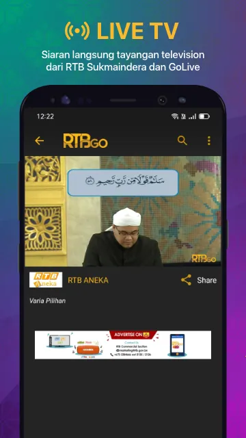 RTBGo App offers FREE access to Bruneian local content production such as dramas, entertainment, documentaries, talk shows and many more, giving viewers and listeners variety of selections at their fingertips. With this App, everyone can enjoy the shows at home and on the move. LIVE TV AND RADIO - Watch live stream TV RTB Sukmaindera or tune to any of your favourite RTB Radio channels - Nasional FM, Pilihan FM, Pelangi FM, Harmoni FM & Nur Islam FM, wherever you are. VIDEO ON DEMAND (VOD)...