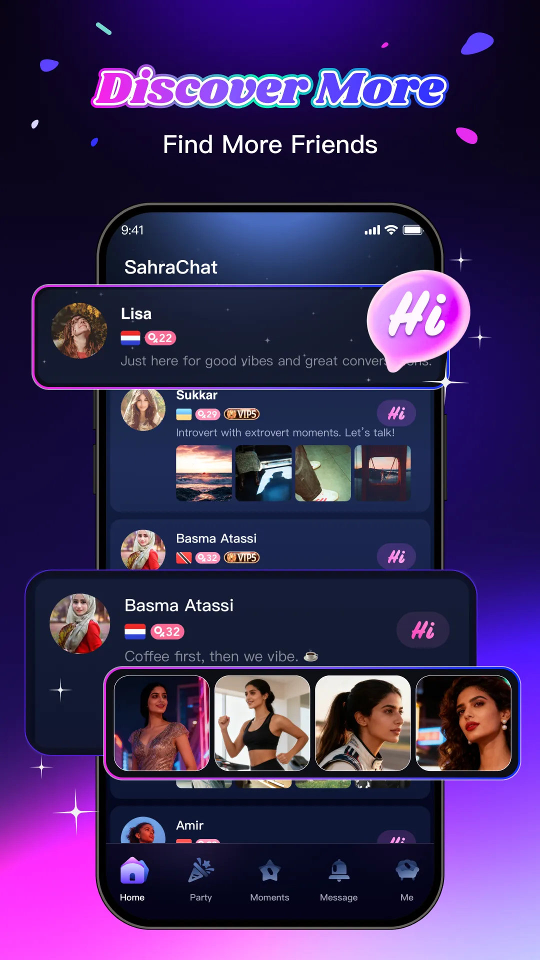 SahraChat invites you to a world of endless conversations and meaningful connections. Whether you're here to make new friends, share your thoughts, or simply relax and listen, SahraChat has it all! 🌟 Why Choose SahraChat? 🌍 Global Arabic Community: Break geographical barriers and connect with millions of Arabic-speaking users from around the world. Explore diverse cultures and perspectives in one vibrant platform. 🗣️ Interactive Voice Rooms: Dive into real-time voice chats, join themed rooms, or create your own space to host lively discussions or casual meet-ups. 🎭 Fun & Expressive Features: Use reactions, emojis, and sound effects to bring your conversations to life and make every moment unforgettable....