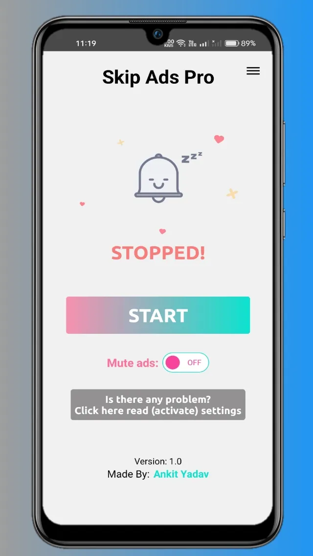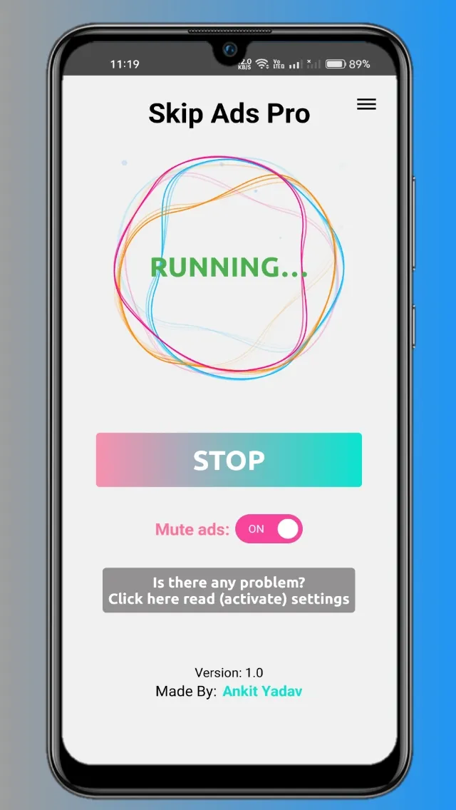 This app is not an ad blocker! This app only works to skip and mute ads on videos. It's basically Skip the skippable ads. This app doesn’t promise adfree video streaming, it helps to skip the ad automatically. We are using Accessibility service for click skip ad button on videos. We are mute ads during ads are displaying on videos....