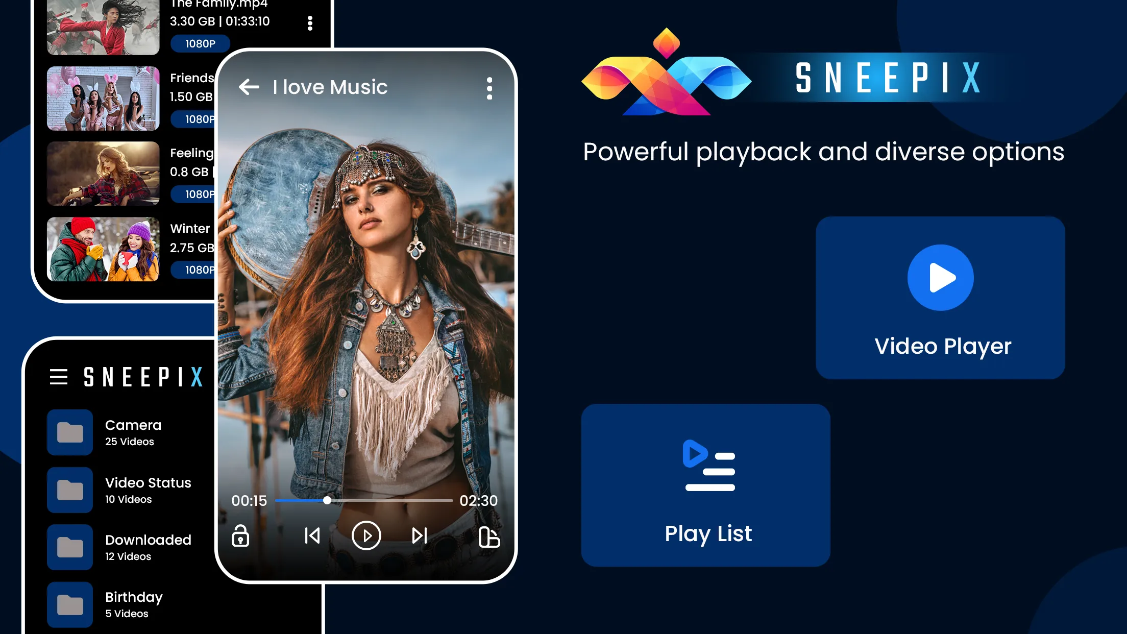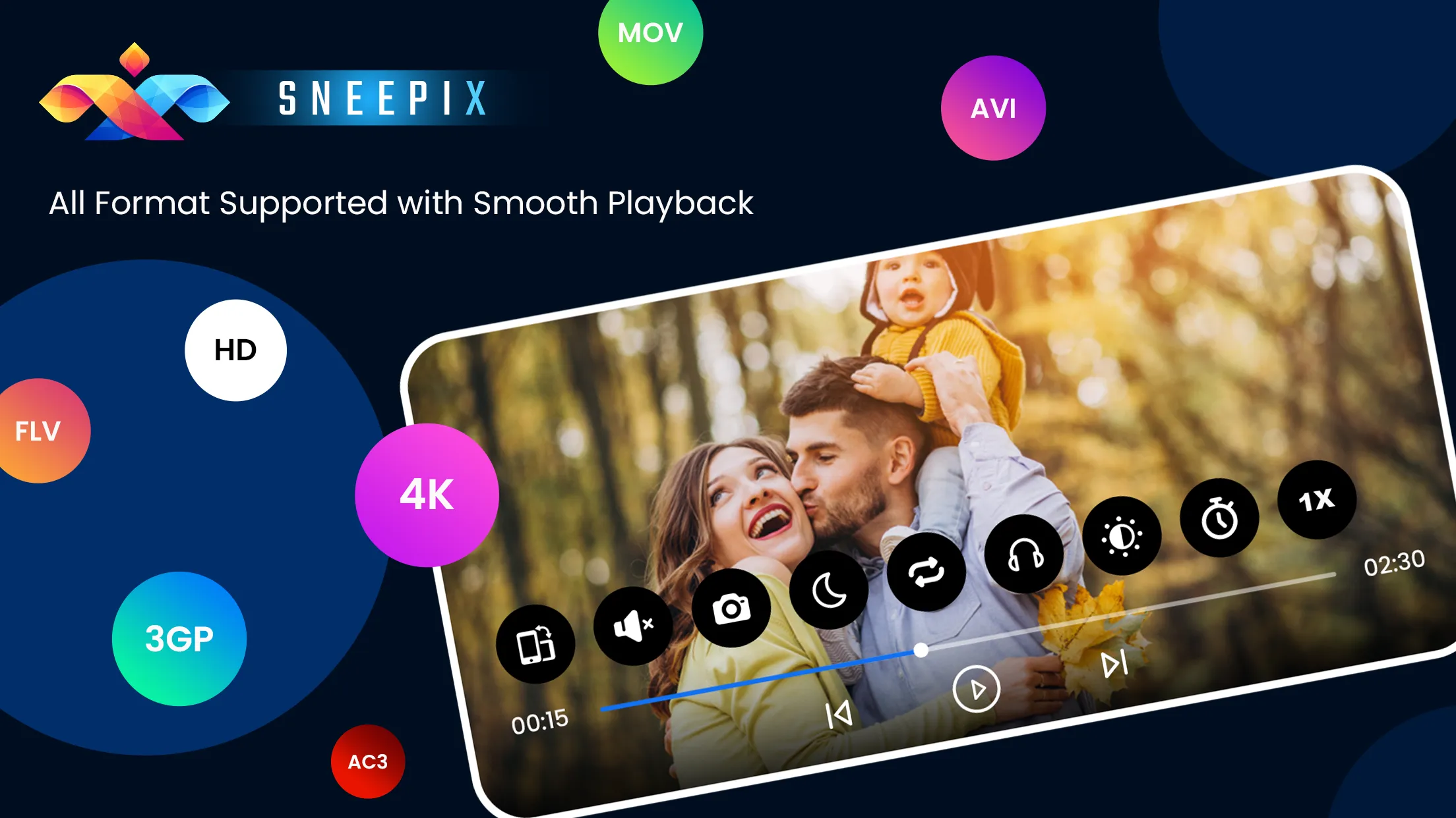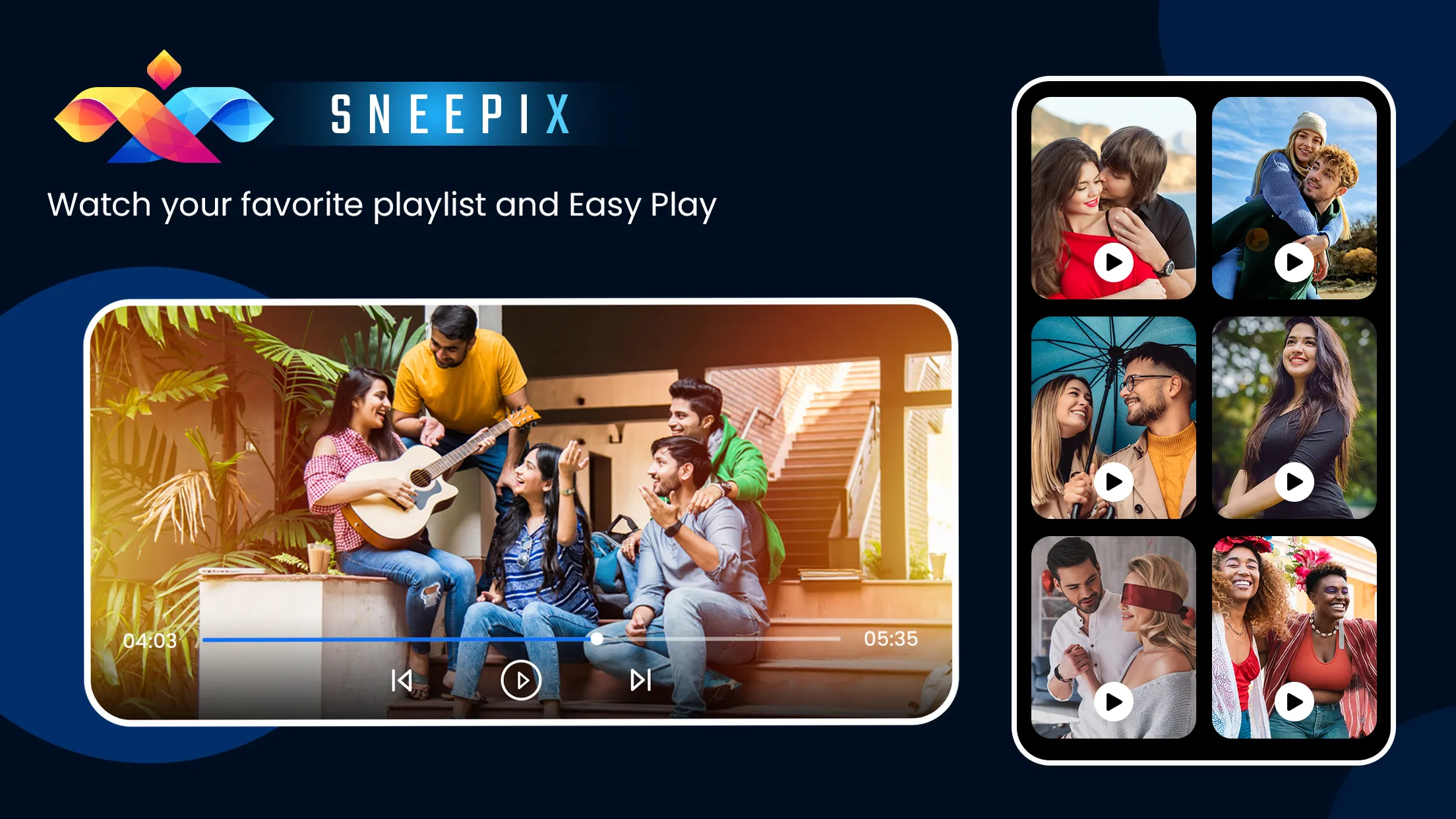 Sneepix is Perfectly designed HD Video Player Sneepix is video player which is the light and easy one that can be played in anytime. Video Player all format is a powerful and convenient media playback app.It can play all video format including 4k, HD videos.It also supports audio files with music player. A User-Friendly Interface...
