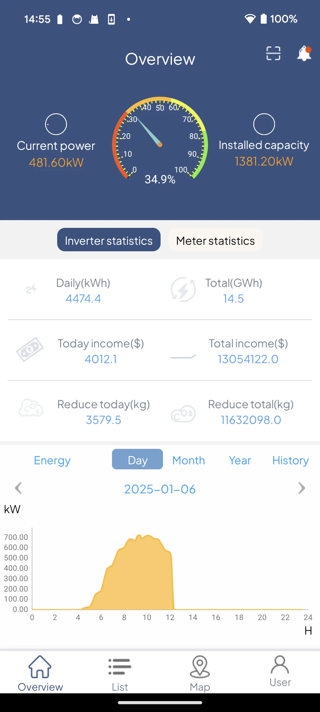 The APP can support to query and operate the data of the solar plant , the data collected on the Data-Logger is reliable and real-time.
