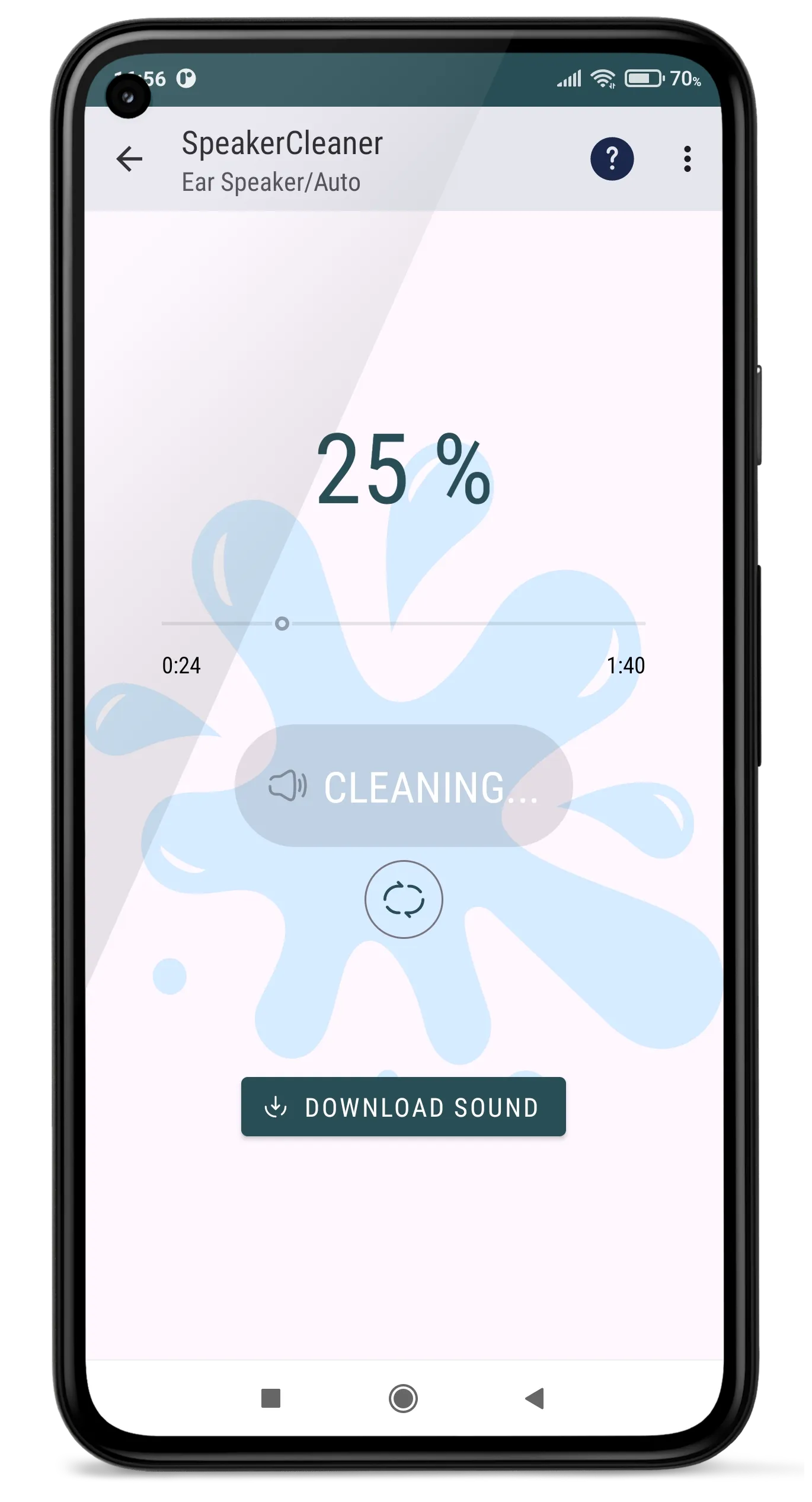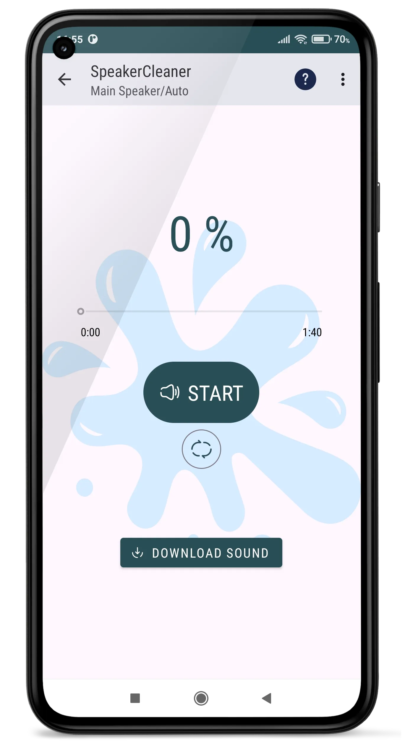 A working and simple tool for cleaning the speaker from water, dust and dirt using special sounds. A proven way to clean moisture and dust from your Android phone. If your mobile is playing quietly, or you can't hear the other person well when talking, just try our app. If you dropped your phone into the water or dust got into it and after that the speaker of your device began to work worse, you can use our free and simple tool for cleaning the speaker of your smartphone. How to use? 1. Set the sound volume to maximum....