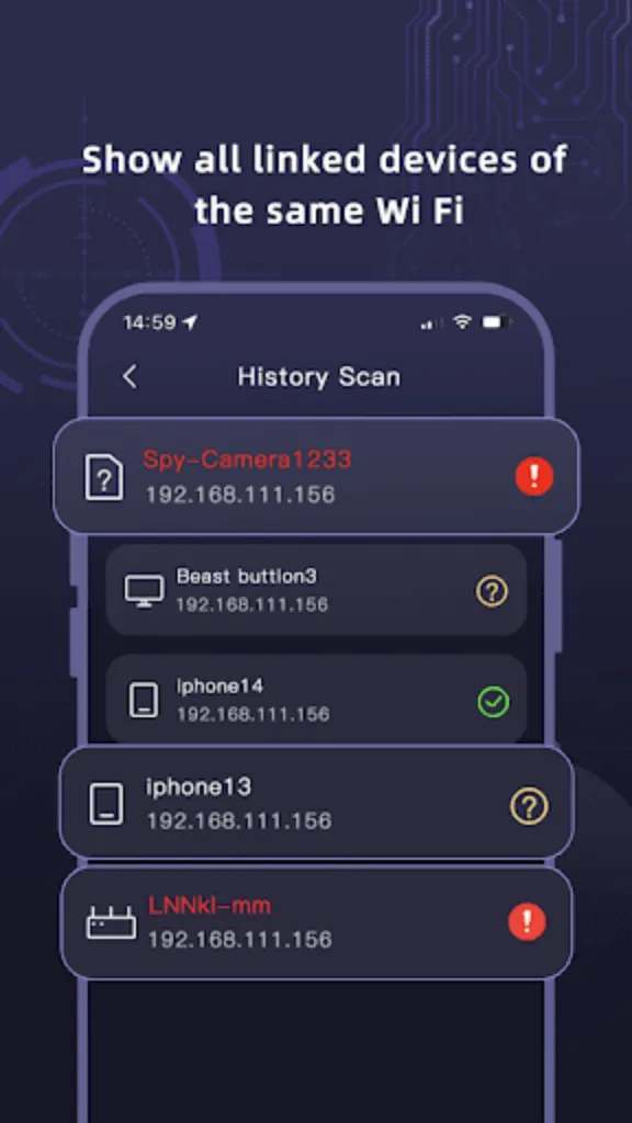 Introducing Spy Hidden Camera Detector, your ultimate defense against hidden spy cameras and listening devices. Our app features powerful WiFi and Bluetooth scanners to ensure your privacy and security are always protected. Worried about your privacy? With Spy Hidden Camera Detector, you can now take control of your security. Our advanced technology empowers you to quickly and accurately detect hidden cameras and suspicious devices within your network. Key Features: ...