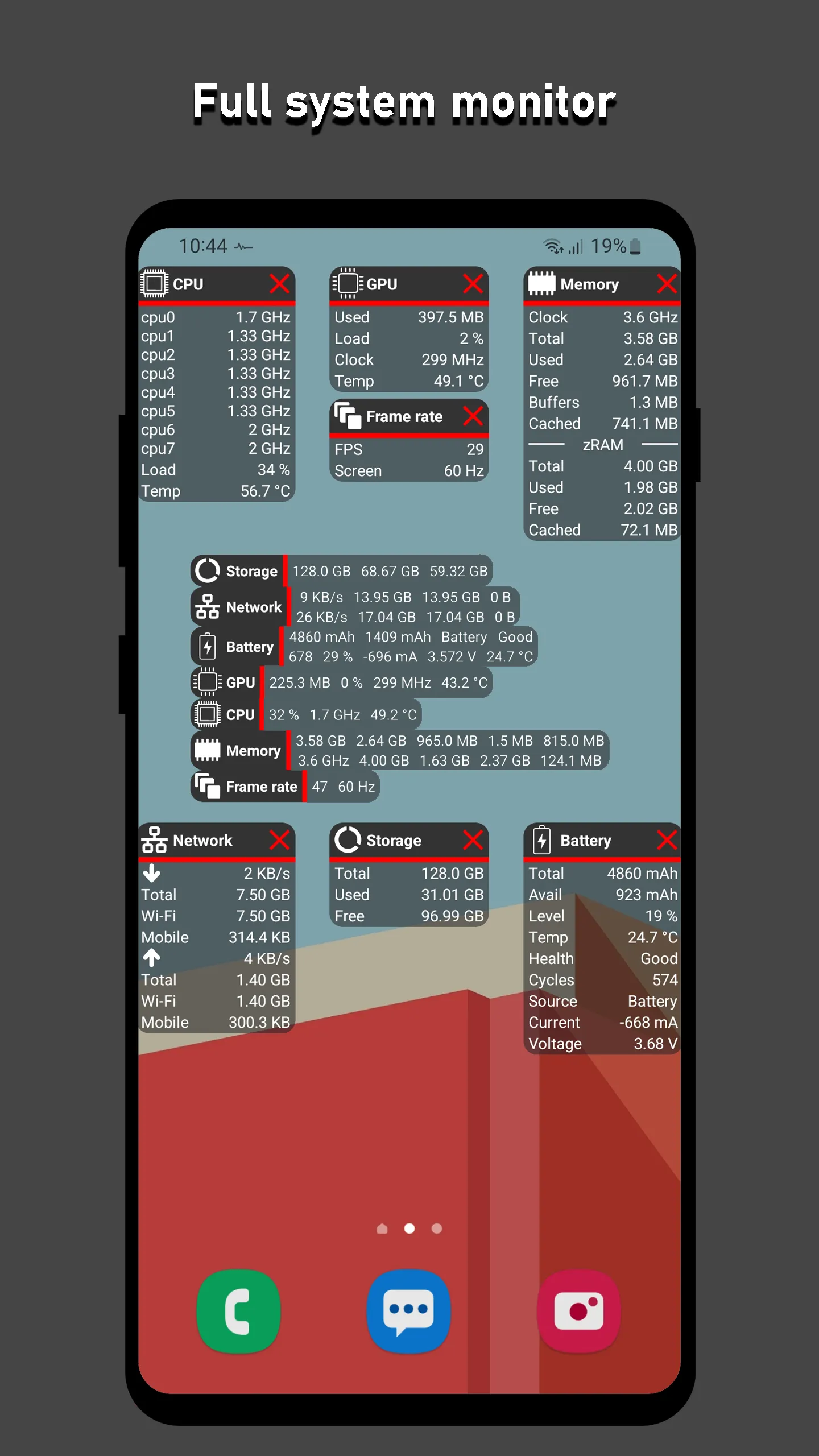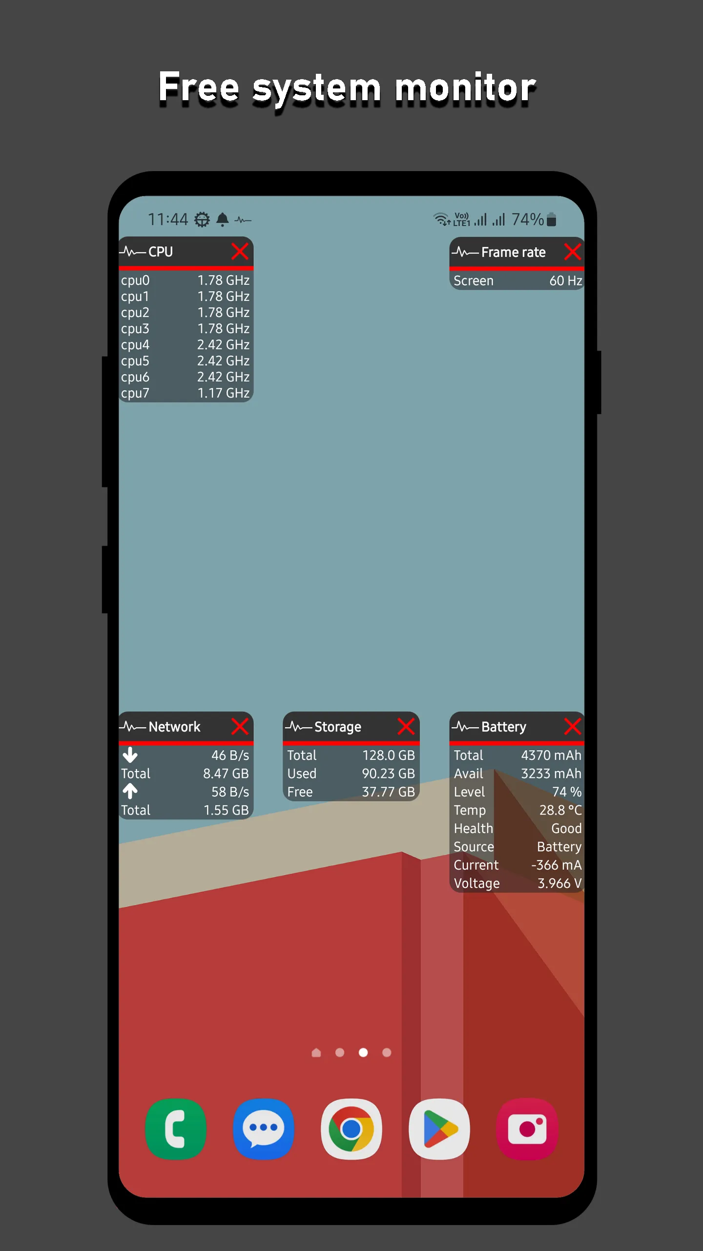 This application is a system monitoring tool. It provides real-time monitoring of your device's performance, including FPS meter, screen refresh rate, CPU and GPU frequency, temperature, RAM frequency and more: Frame rate ✅ - FPS (Frames per second) meter of the foreground current app - Screen refresh rate of your device display CPU ✅...