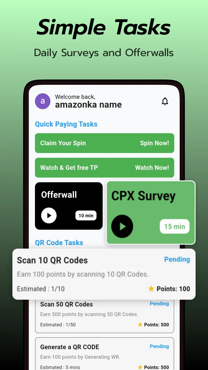 Here's an easier way to earn rewards while completing tasks and Generating QR codes. TaskPay allows users to earn rewards with their phones. If you like completing offers and want to get rewarded, here is an answer. The more you scan QR, the more points you earn! Get free rewards by playing lucky spin & Completing Tasks. Invite your friends and earn rewards. ...