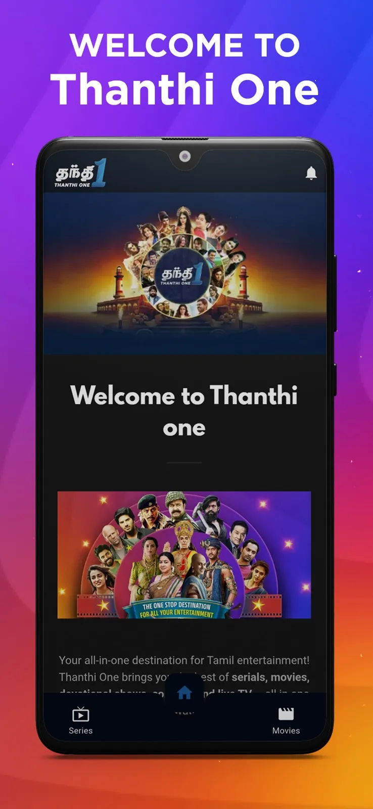 Dive into a world of boundless entertainment with Thanthi One, the newest app from the renowned Daily Thanthi Group. Designed to cater to Tamil-speaking audiences worldwide, Thanthi One offers an extensive library of pan-Indian and international content, all expertly curated and dubbed fully in Tamil for an immersive experience. Movies - Indulge in a cinematic journey like no other as you explore a diverse range of movies sourced from across India and around the globe. From Bollywood blockbusters to Hollywood hits, Thanthi One brings the best of cinema right to your screen. Epic Serials - Immerse yourself in epic series that transports you to different eras and realms. Experience the grandeur of devotional sagas such as Devi and Veera Anjaneya, or delve into historical epics like Porus and Chandragupta Maurya. Each series promises a thrilling adventure and a visual treat for the senses. ...