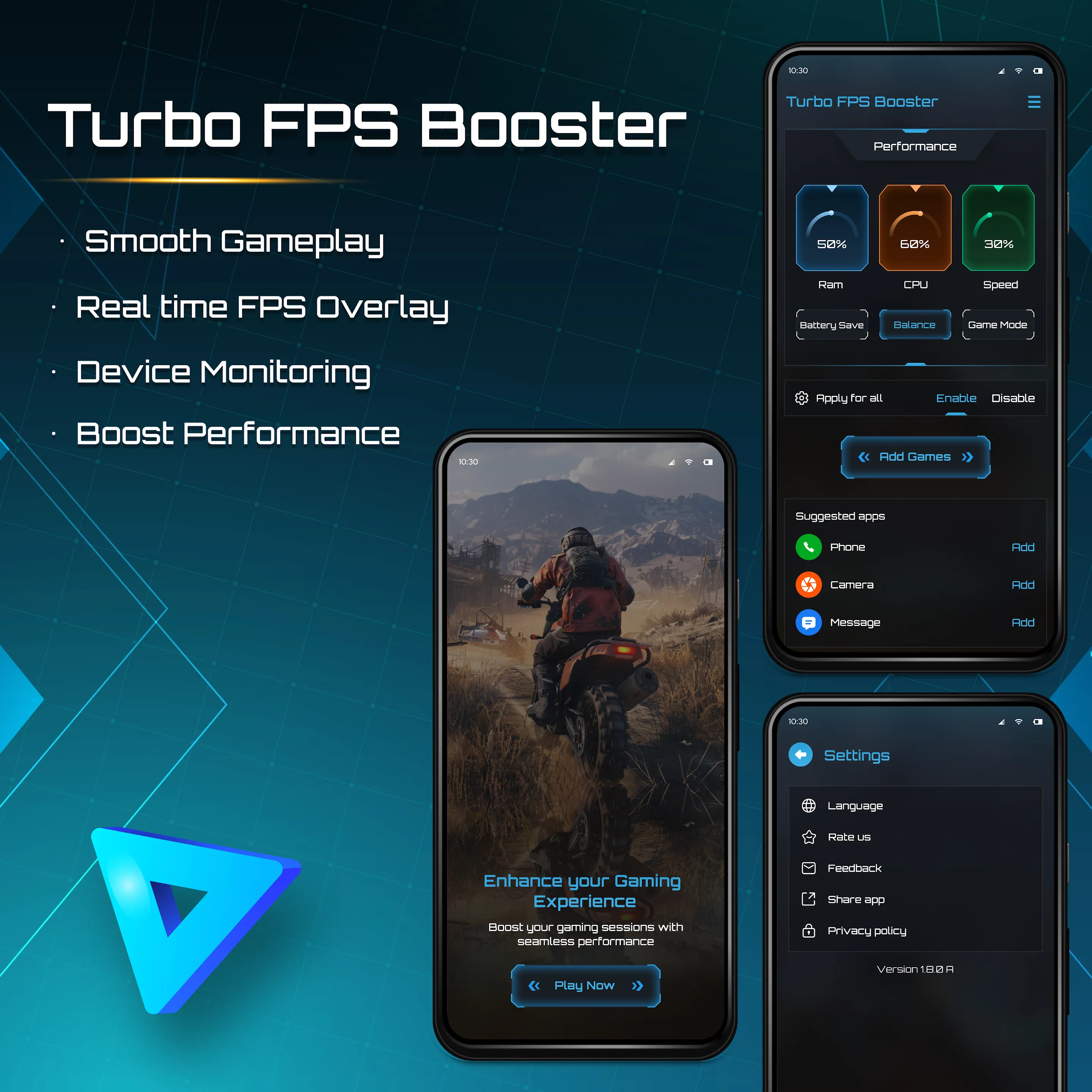 🚀 Turbo FPS Booster: Game Mode for Pro Gamers 🎮 Level up your mobile gaming experience with Turbo FPS Booster, the ultimate Game Mode utility designed for FPS, MOBA, RPG, and Battle Royale players. Whether you’re in a warzone fight, sniper duel, or survival arena, Turbo helps create smoother, faster, and more focused sessions. 🔥 Core Features • FPS Stability Assist – Supports better framerate conditions for intense shooter and MOBA battles. • Game Display Control – Optimize screen settings instantly to save battery or keep visuals sharp. • Smart Brightness Adjustment – Day or night, keep visibility perfect during matches....