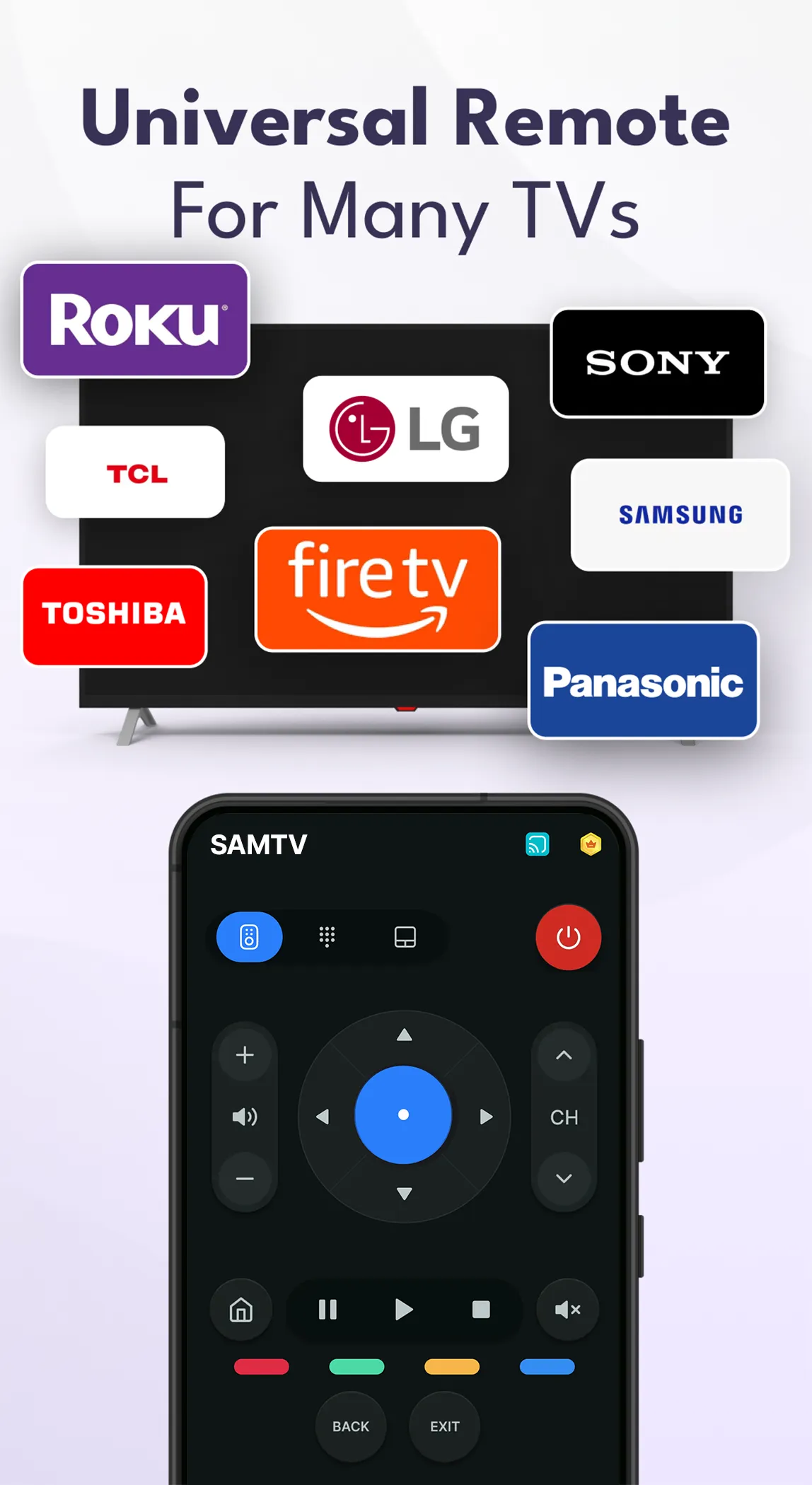 π Universal TV Remote Controller has many Key Features: β Support remote TV universal for various brands: LG, Sony, Samsung,... β Turn off your smart TV β Increase or decrease the volume β Up, down, right, and left can all be customized. β Easily navigate accessible favorite channels...