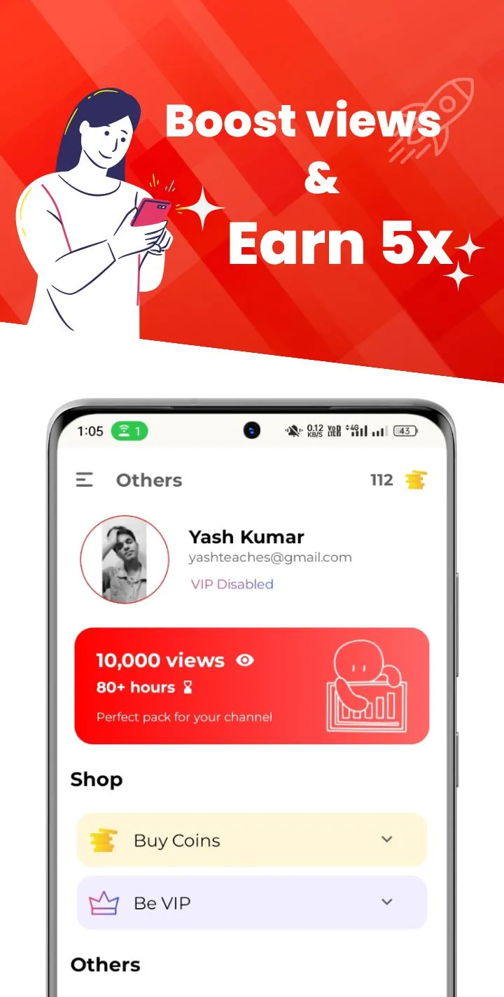 View4View is a viral views booster & views increaser app to boost views on your video. It's a great platform for content creators to get free views on their channel. π Do you want to monetize your channel? π Do you want to get free views and likes? Then View4View is for you! Complete your milestone of 1000 subscribers, 10K views and 4000 hours watchtime easily with this video views booster app....