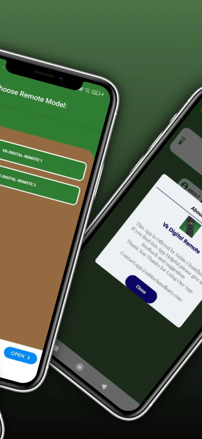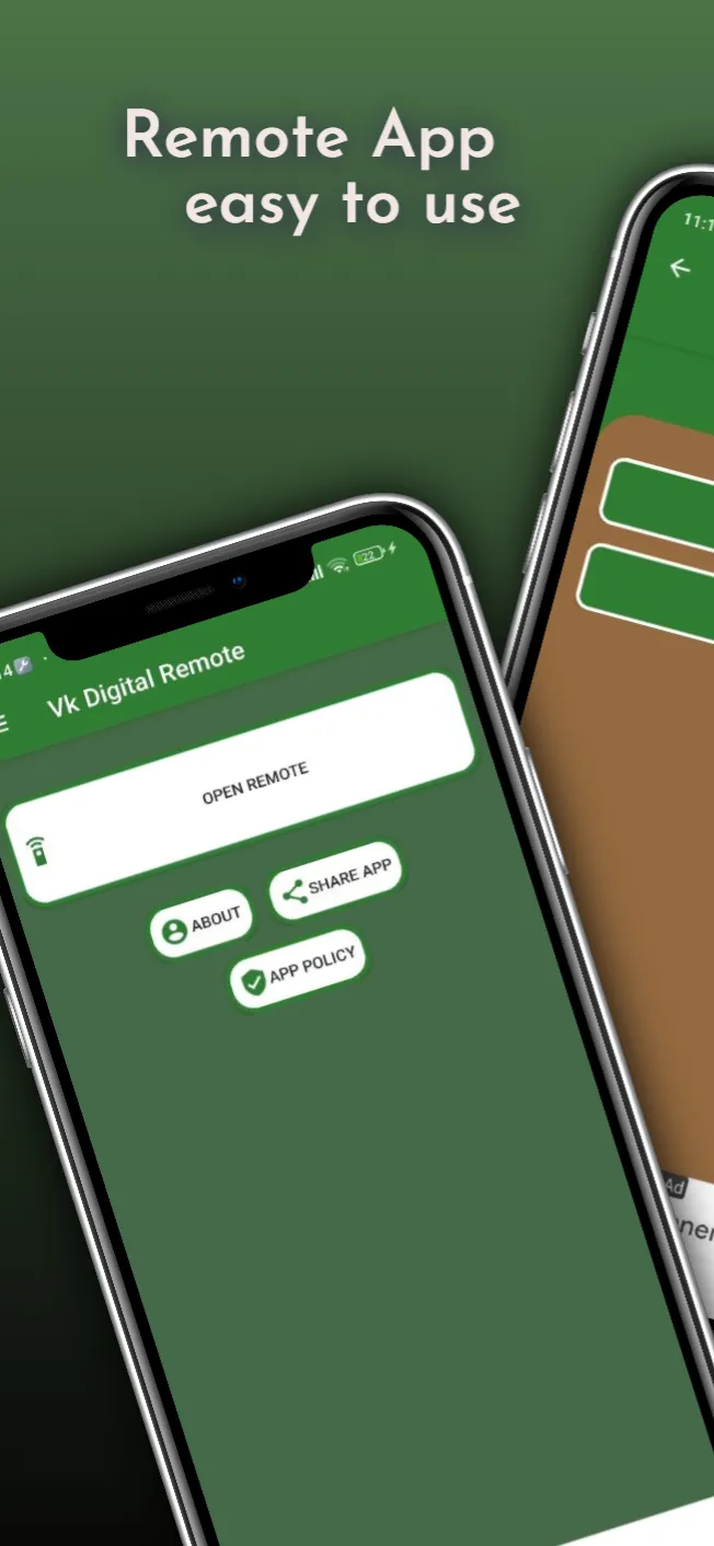 VK Digital Remote: Elevate your VK Digital experience with our intuitive Android app. Introducing VK Digital IR Android Remote, the ultimate remote control app designed exclusively for smartphones equipped with an infrared (IR) sensor. Elevate your control over VK Digital devices with this intuitive and customizable remote experience. Seamlessly navigate and access smart features directly from your smartphone. Note: To use this App your phone must have IR Sensor else this app will not works. This is a simple app which has ability to control Vk Digital setup box using IR technology. This App required IR Sensor to communicate IR signal....