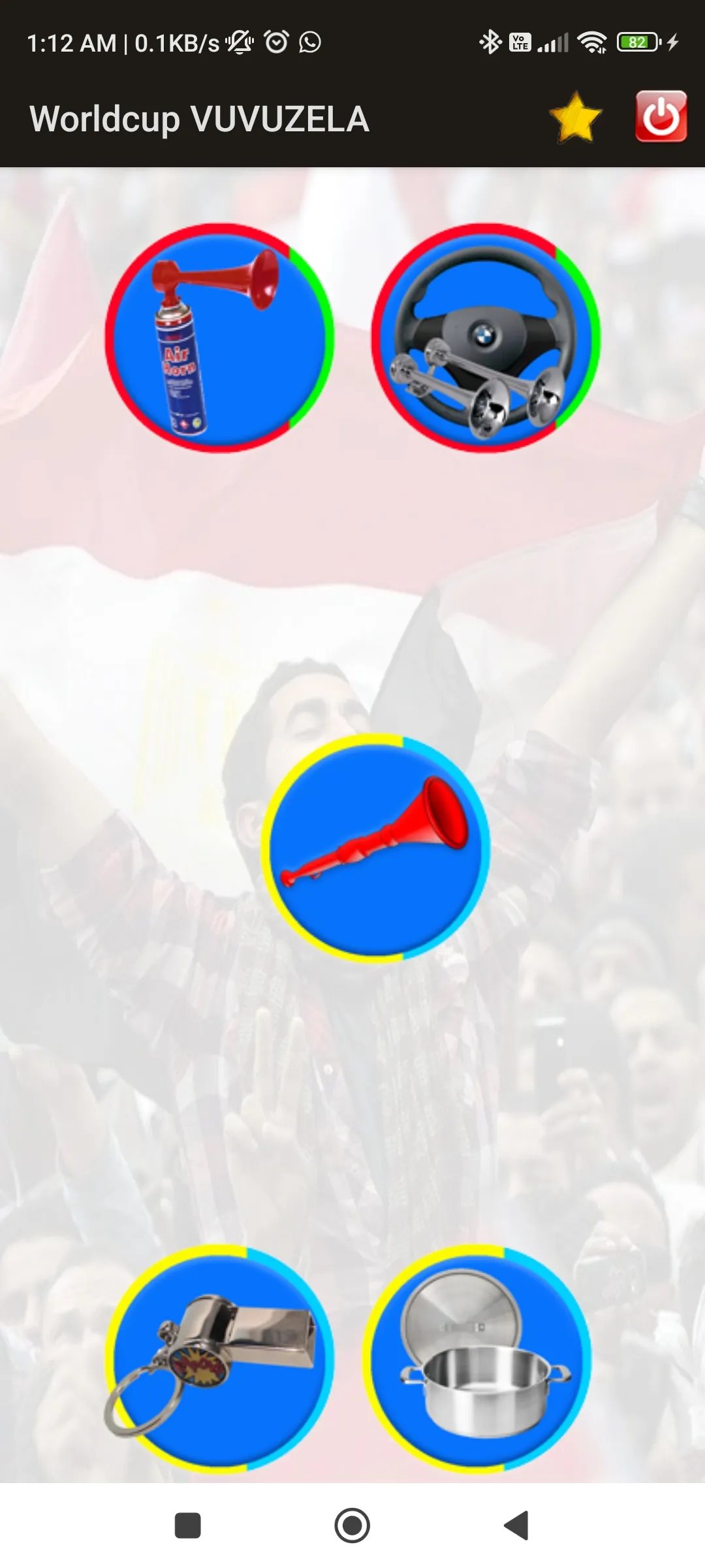The Ultimate fun you can get while you are watching the Football Worldcup. Get everybody's ears and attention and Make all the noise you need in sport games. Wake up your kids or family or even use it as Prank. All the noise you need ... Air Horn, Whistle, Car Horn or even pot noise if you will....