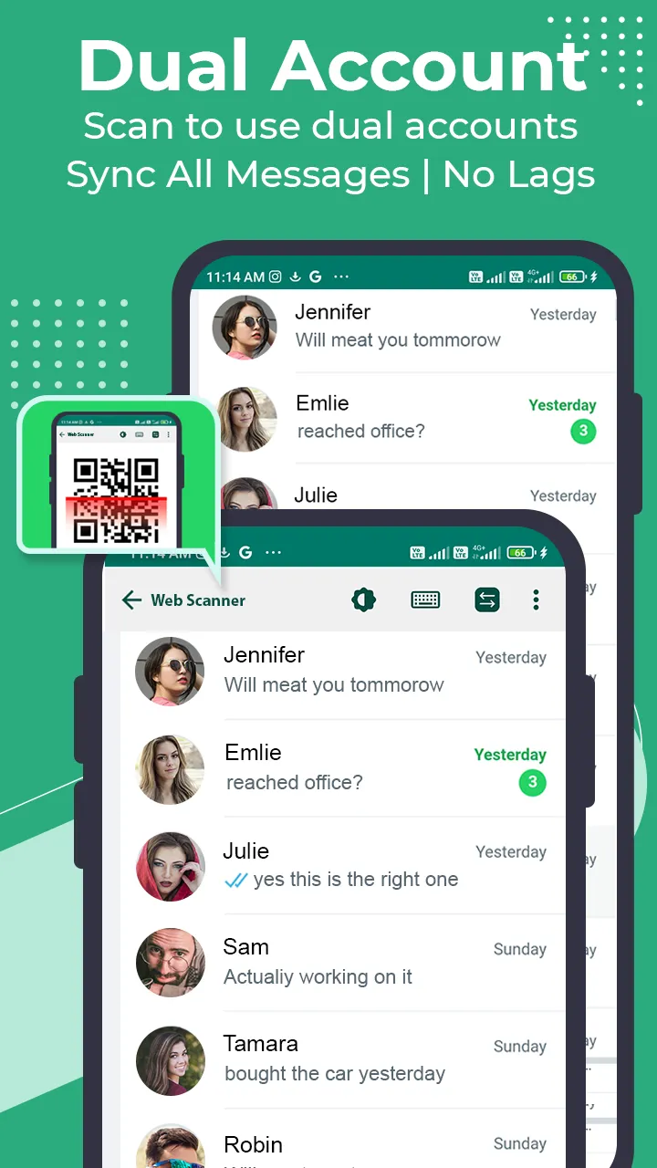 WT Scan: Web Scanner Hub is free App which allows you to open the same account on different devices or log into two accounts on a single device offering strong connection and avoiding unexpected logouts. You can easily manage multiple accounts on a single device. You can save and share status, split a long video to equal parts to share as a status or story. Easily handle multiple accounts, sent and received media files, recover deleted messages and much more. Key Features: ...