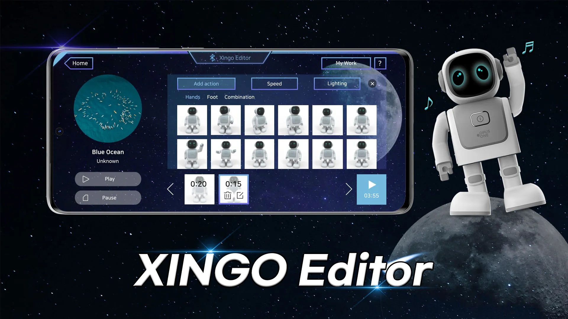 It is an application that can program 139 movements by selecting music stored in the remote control or mobile phone by connecting the songgo, a Bluetooth dancing robot speaker that analyzes and dances music, via Bluetooth.