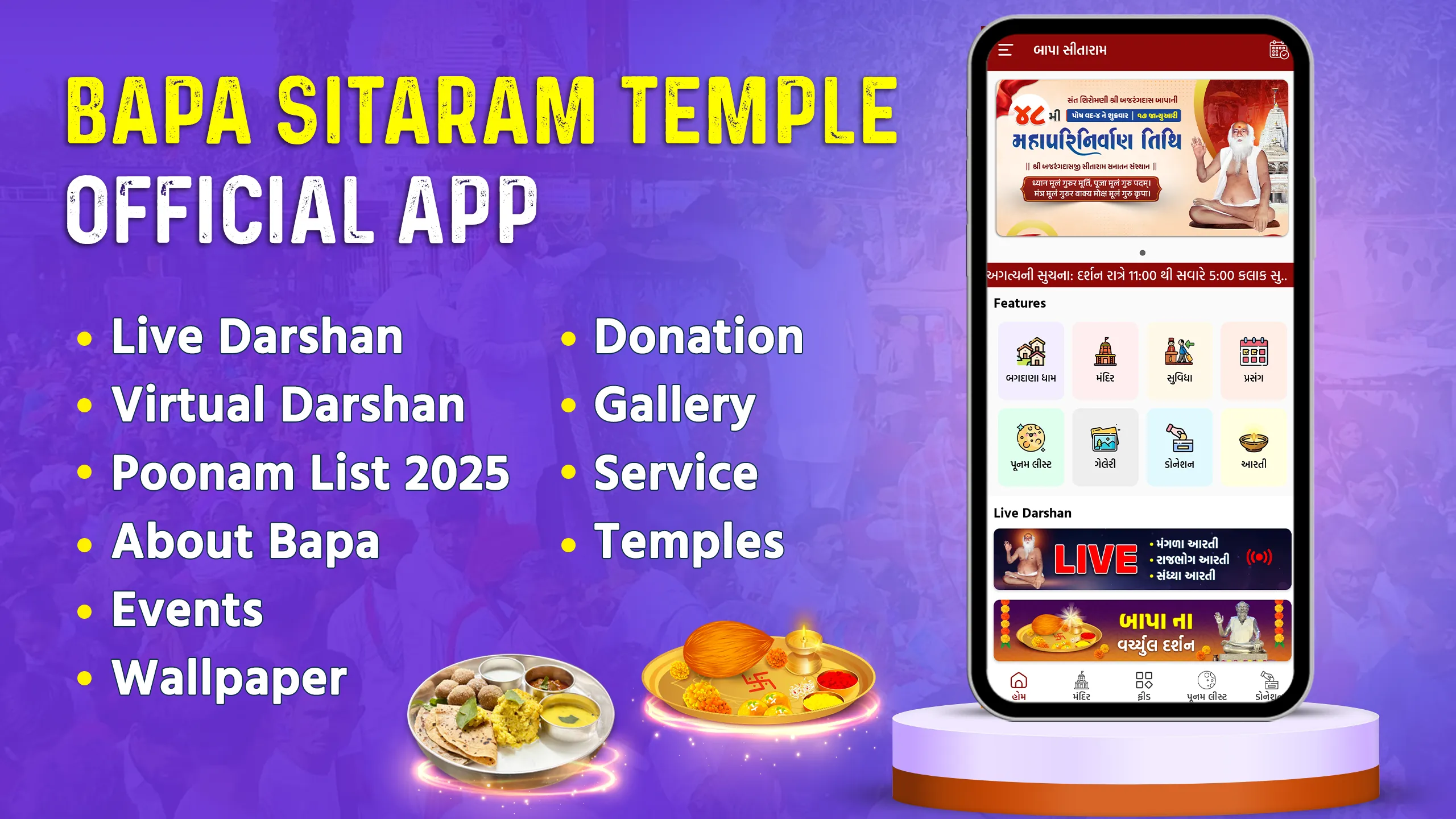 The Bapa Sitaram Temple app is your official gateway to connect with Shree Bajrangdas Bapa, offering everything you need to experience the temple and its services right from your phone. From live darshan to event updates, this app is the ultimate way to stay connected to your spiritual journey. Key Features of the App 🛕 Live Darshan: Experience the divine blessings of Shree Bajrangdas Bapa through live darshan from the temple. Connect spiritually, no matter where you are. ...