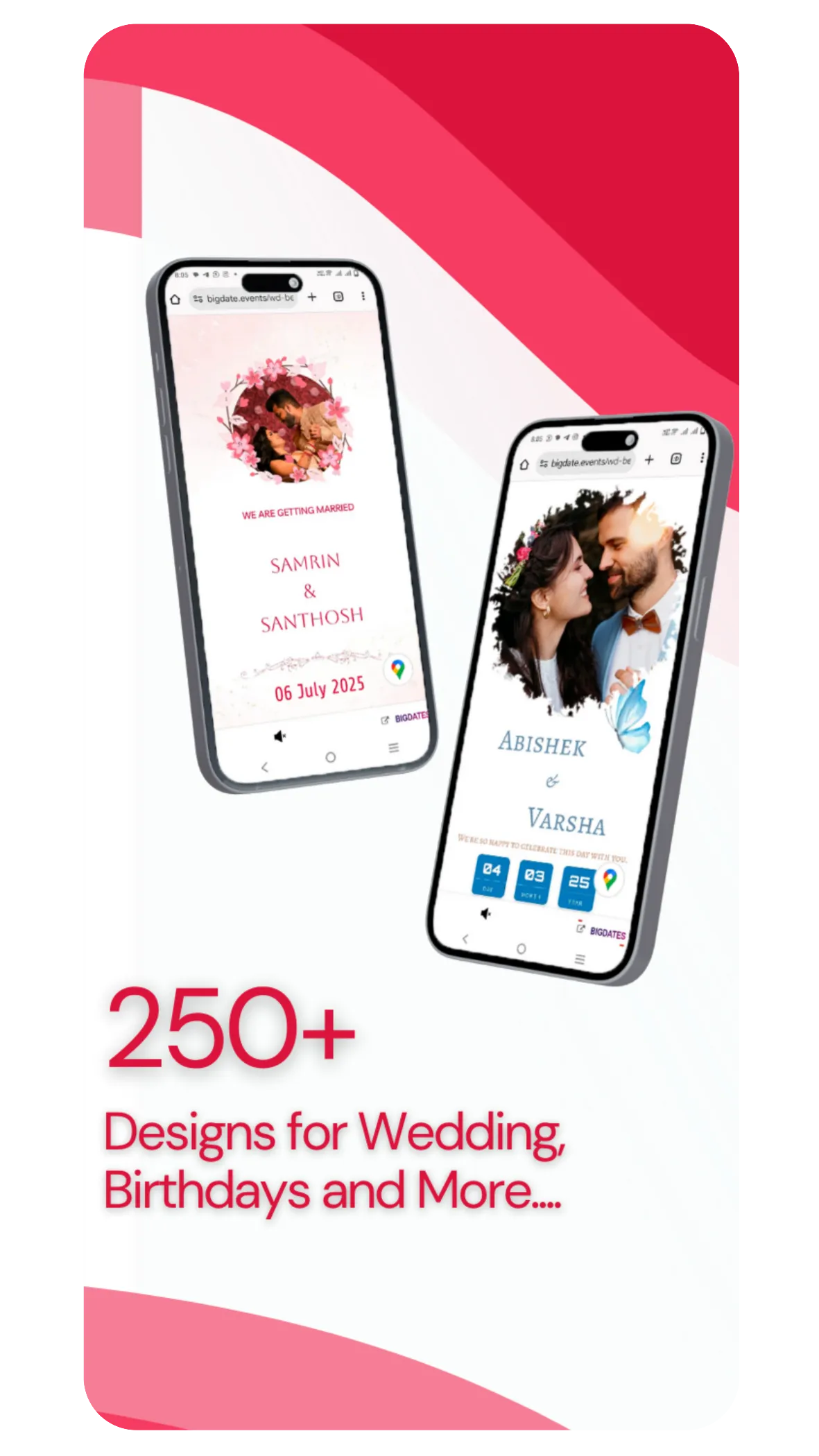 Create Stunning Invitation Websites in Minutes – BigDates.ai BigDates.ai lets you create beautiful, personalized digital invitation websites for weddings, birthdays, naming ceremonies, baptisms, housewarmings, and all your special occasions — right from your phone! No design skills needed. Just answer a few quick questions through our smart chatbot, upload photos, and your unique website will be ready instantly — complete with a QR code and shareable link. ...