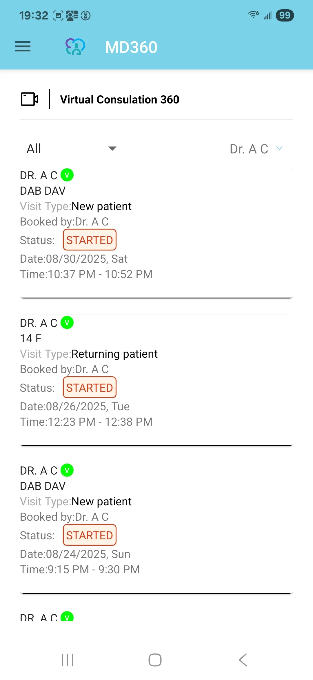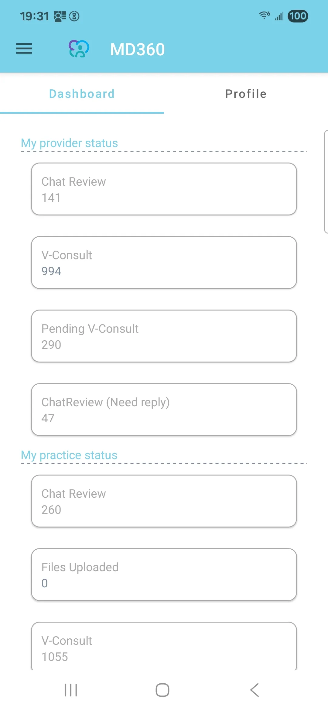 With this app, you can send chat message to a patient, view you profile and get information in the dashboard. You can start a video consulting to a patient.