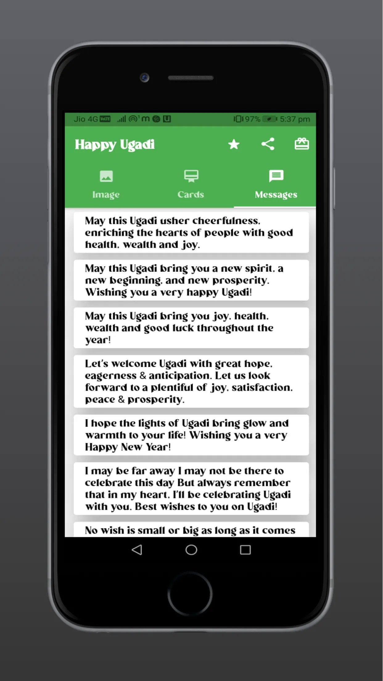 Ugadi Wishes- Quotes & Images Ugadi Message and Wishes app provides you Happy Ugadi Images, Happy Ugadi Cards, Happy Ugadi Message, Happy Ugadi Quotes, and Happy Ugadi GIFs for share copy and Download Ugadi Wishes on Whats app, Facebook, Instagram and other social media. You can Share your Happy Ugadi images with your friends and family....
