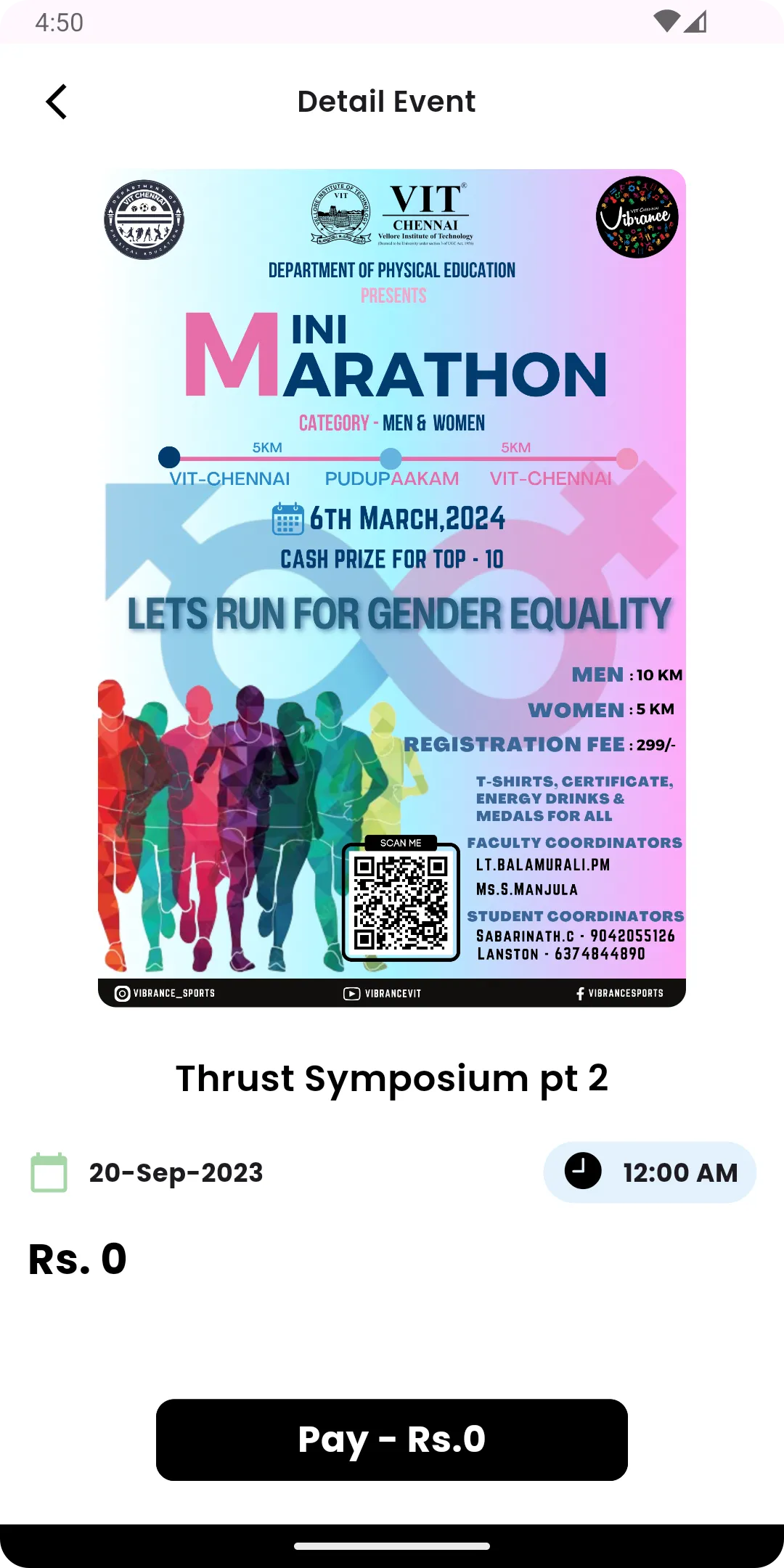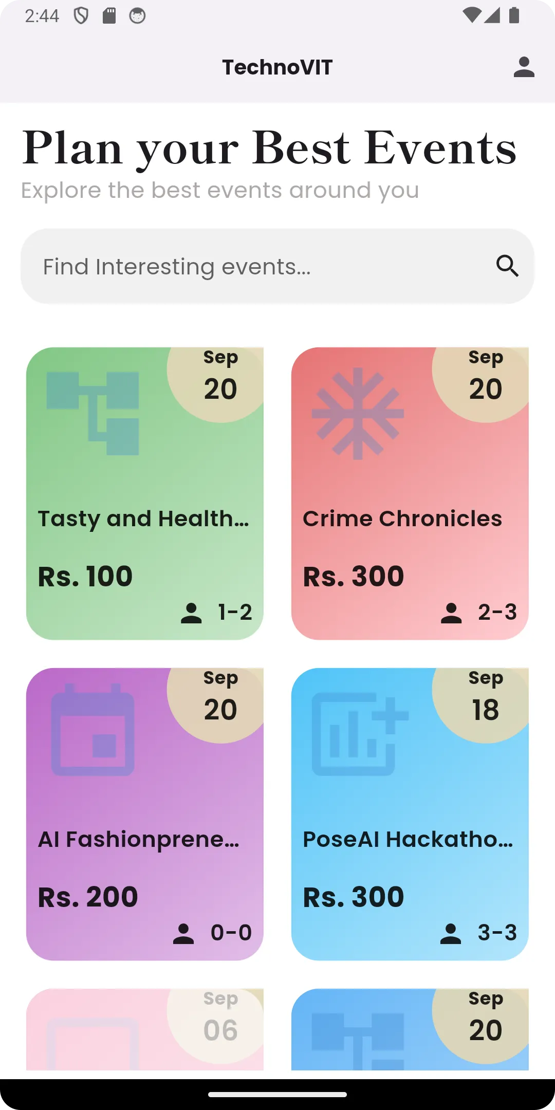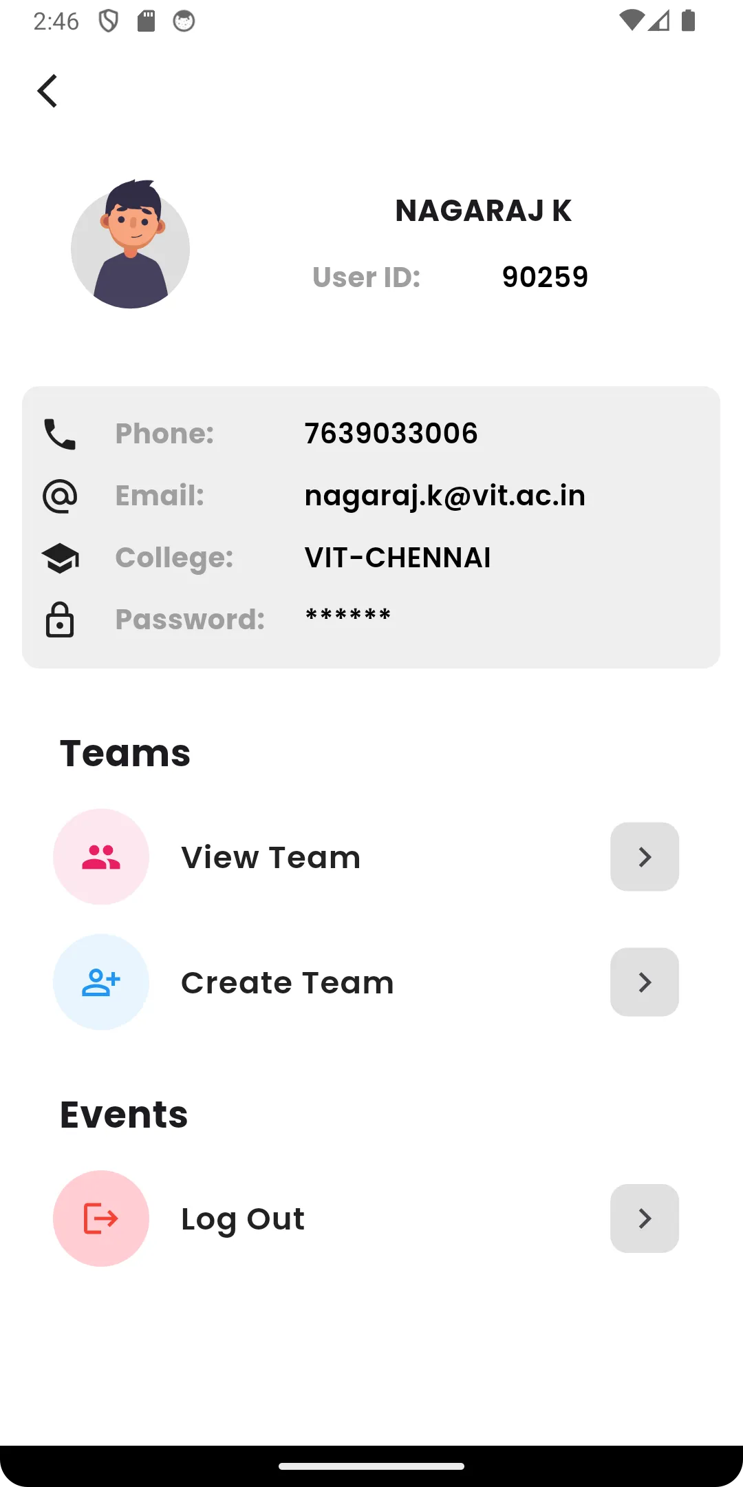 This mobile app is designed specifically for VIT University staff, faculty, and students, providing a streamlined platform for campus event management and team collaboration. Users can log in securely using their VIT credentials to view a list of university-hosted events, register for events and pay for those events, and create teams for group participation. The app also offers detailed profile views and events history view and receipts view. Whether you're a student, faculty, or staff member, t...