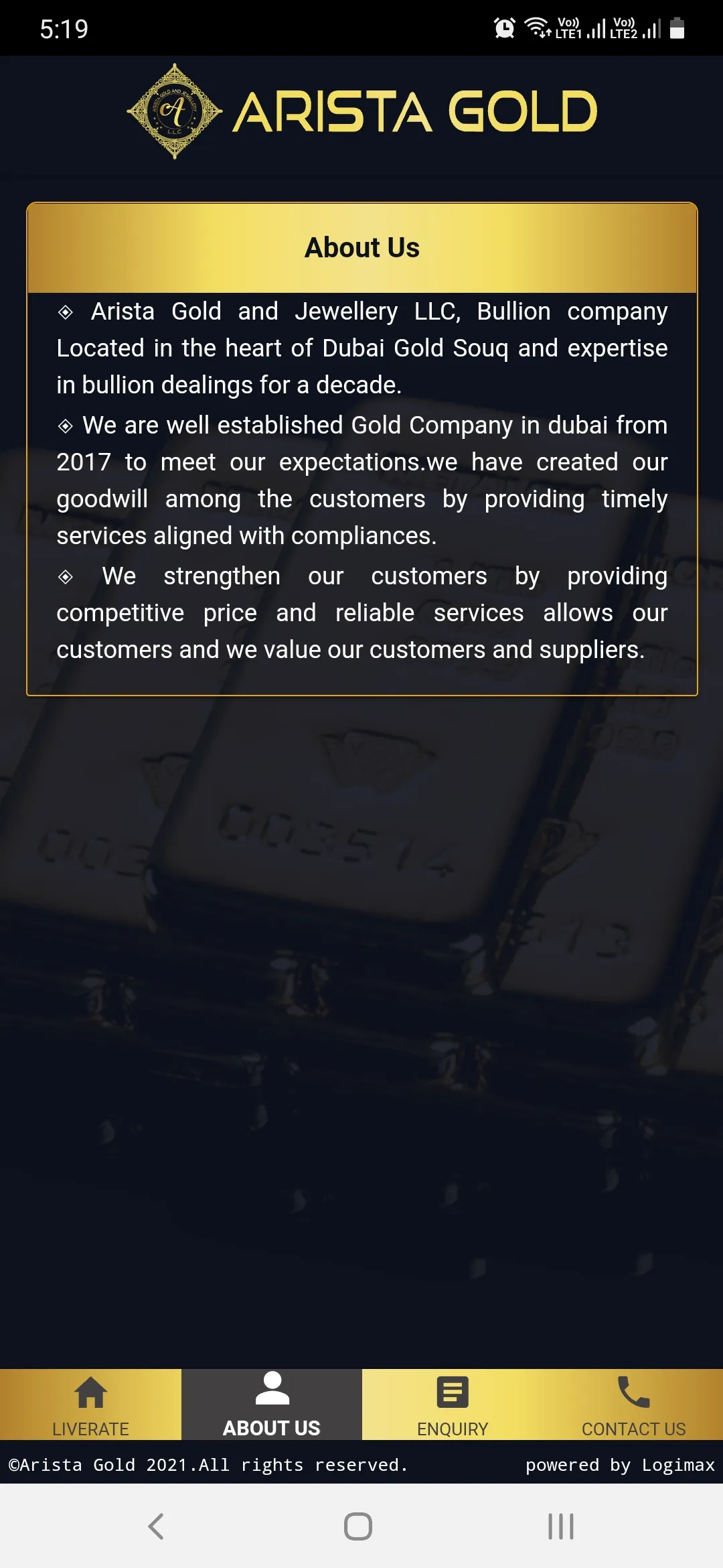 Arista Gold and Jewellery LLC, Bullion company Located in the heart of Dubai Gold Souq and expertise in bullion dealings for a decade. We are well established Gold Company in dubai from 2017 to meet our expectations.we have created our goodwill among the customers by providing timely services aligned with compliances. We strengthen our customers by providing competitive price and reliable services allows our customers and we value our customers and suppliers.