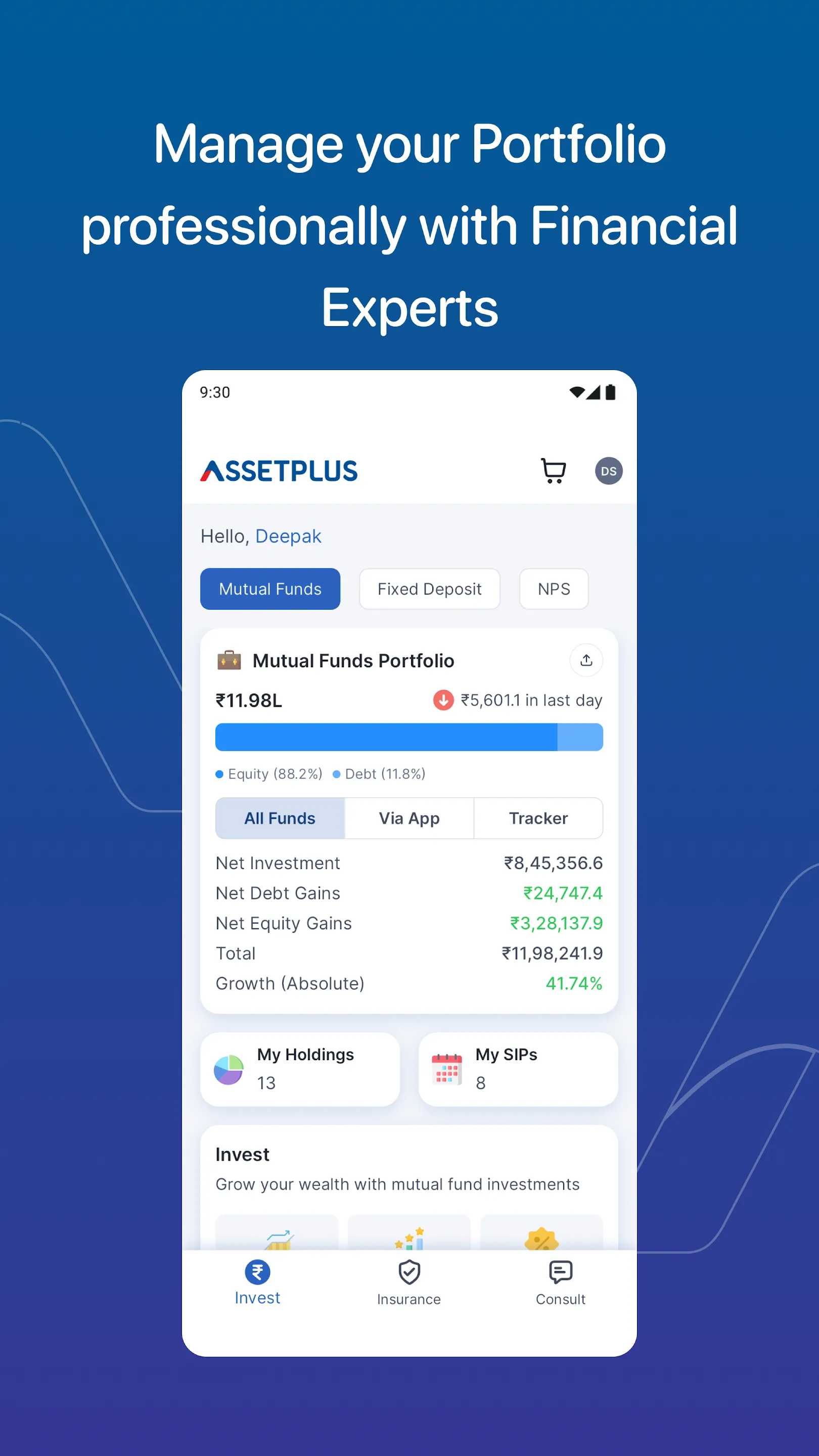 AssetPlus is India’s best-assisted investment app for Mutual Fund Investments. We guide you in the right direction towards your financial freedom through: A dedicated financial advisor Understanding your financial goals & risk appetite to curate a tailored portfolio Managing your external & internal investments in one app Encouraging investment discipline...