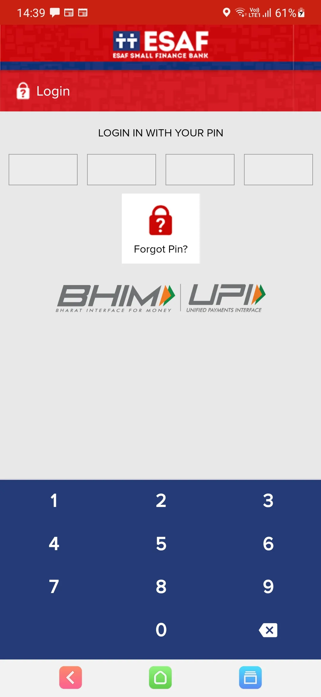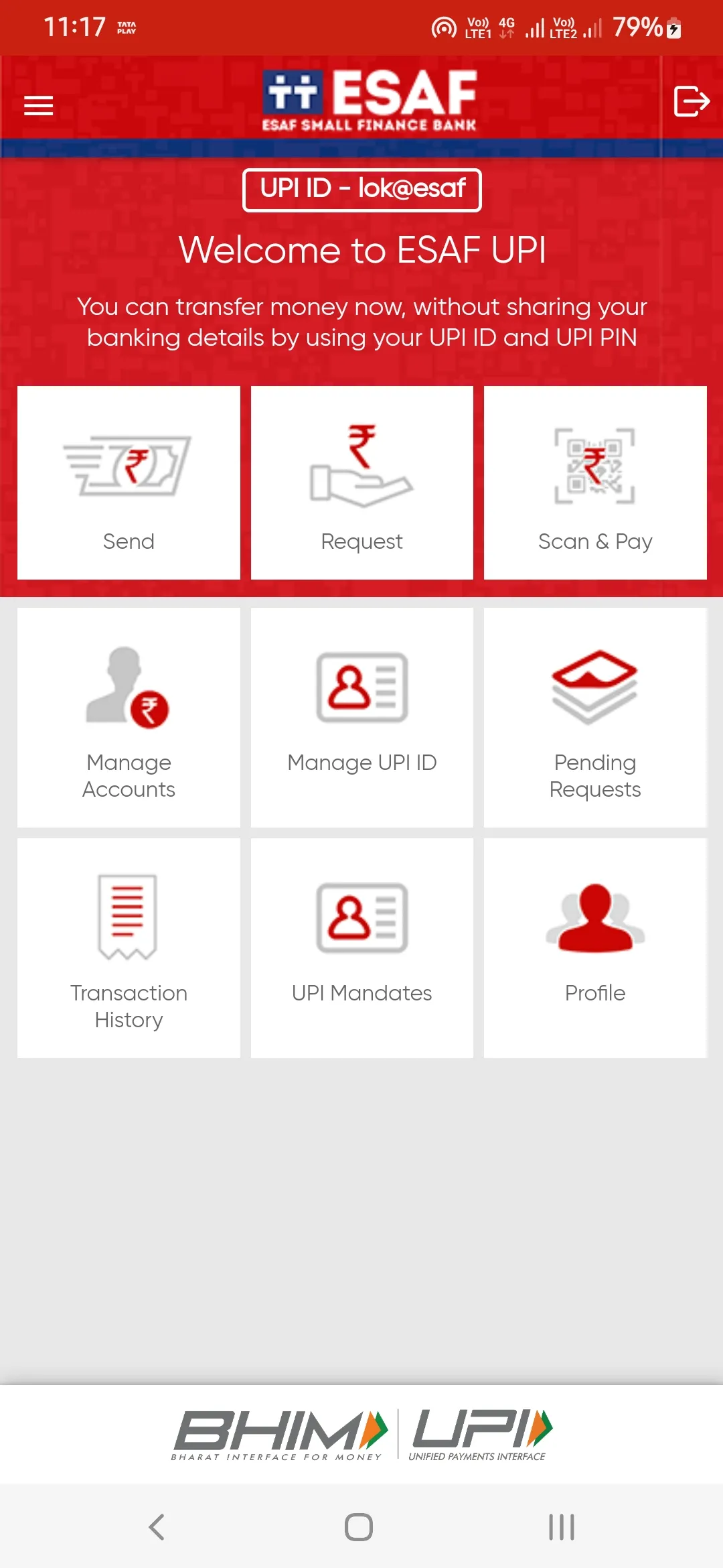 You can transfer money now, without sharing your bank details by using your BHIM ESAF UPI ID and PIN BHIM ESAF UPI is an initiative to enable fast, secure, reliable cashless payments through your mobile phone. The application is interoperable with other Unified Payment Interface (UPI) applications and bank accounts for instant online money transfers. Users can add accounts of different banks seamlessly, pay and collect money through UPI ID, check balances, generate QR codes, etc. UPI Payments is secure and easy and can be done only through UPI PIN and UPI ID. ...