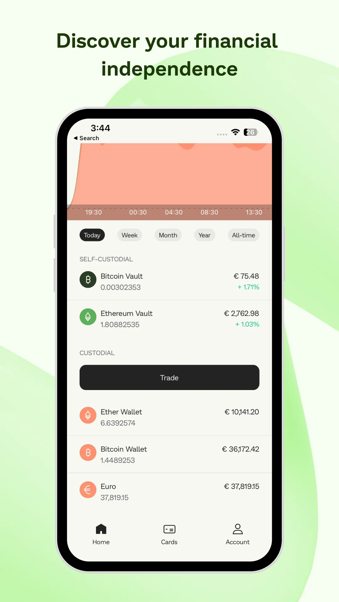 OWN YOUR FUTURE. LIVE ON CRYPTO. Grow your wealth by managing bitcoin, ether, and euros securely in one app. Spend instantly with your bank account and Visa card. FREEDOM OF TRANSACTION. Blend tomorrow's money into your daily life and secure your financial independence. ...
