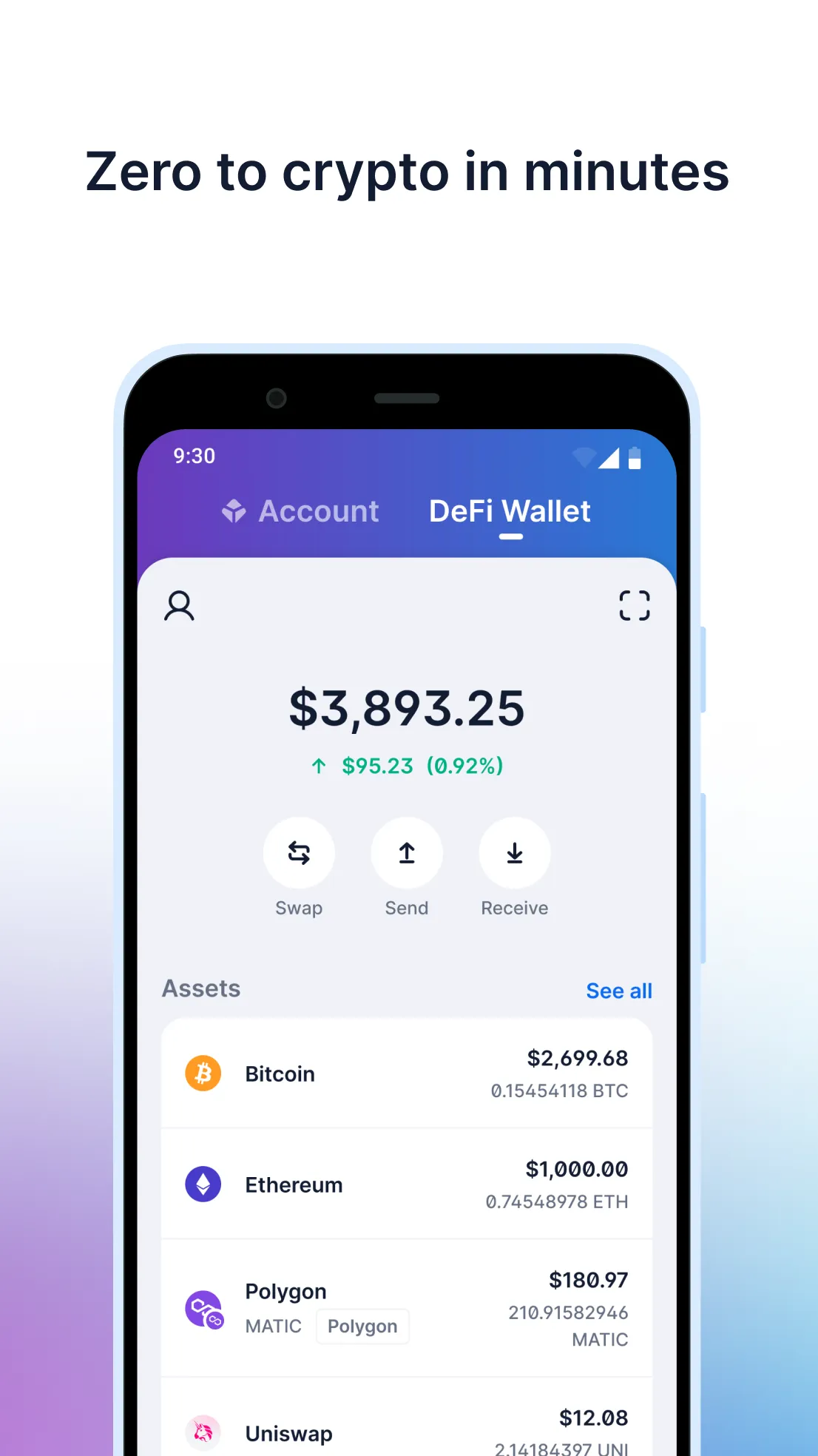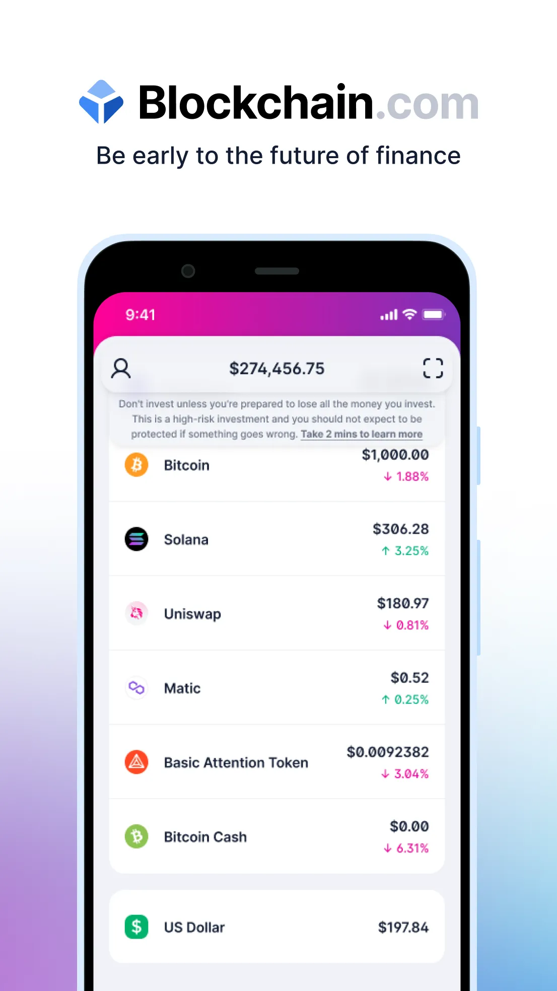Blockchain.com lets you access crypto and self-custody your assets—all in one place. Interact with dozens of cryptocurrencies on a platform used by over 30 million people. Self-custody your crypto across Bitcoin, Ethereum, Polygon, and other leading blockchains, with the DeFi Wallet. Discover the world of DeFi. Use decentralized applications (dapps), collect NFTs, and explore web3. Supported Assets: Bitcoin (BTC), Ethereum (ETH), Cardano (ADA), Polygon (MATIC), Solana (SOL), Polkadot (DOT), Dogecoin (DOGE), TRON (TRX), Chainlink (LINK), Uniswap (UNI), Aave (AAVE), Algorand (ALGO), Tether (USDT), USD Coin (USDC), and many more! Security features:...