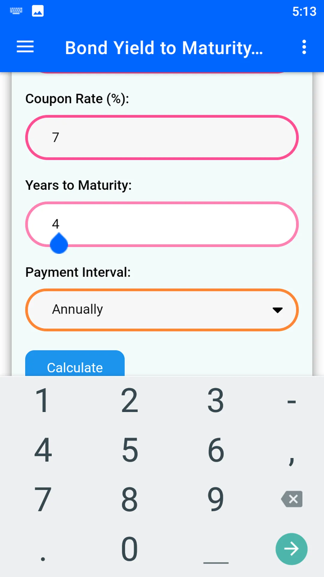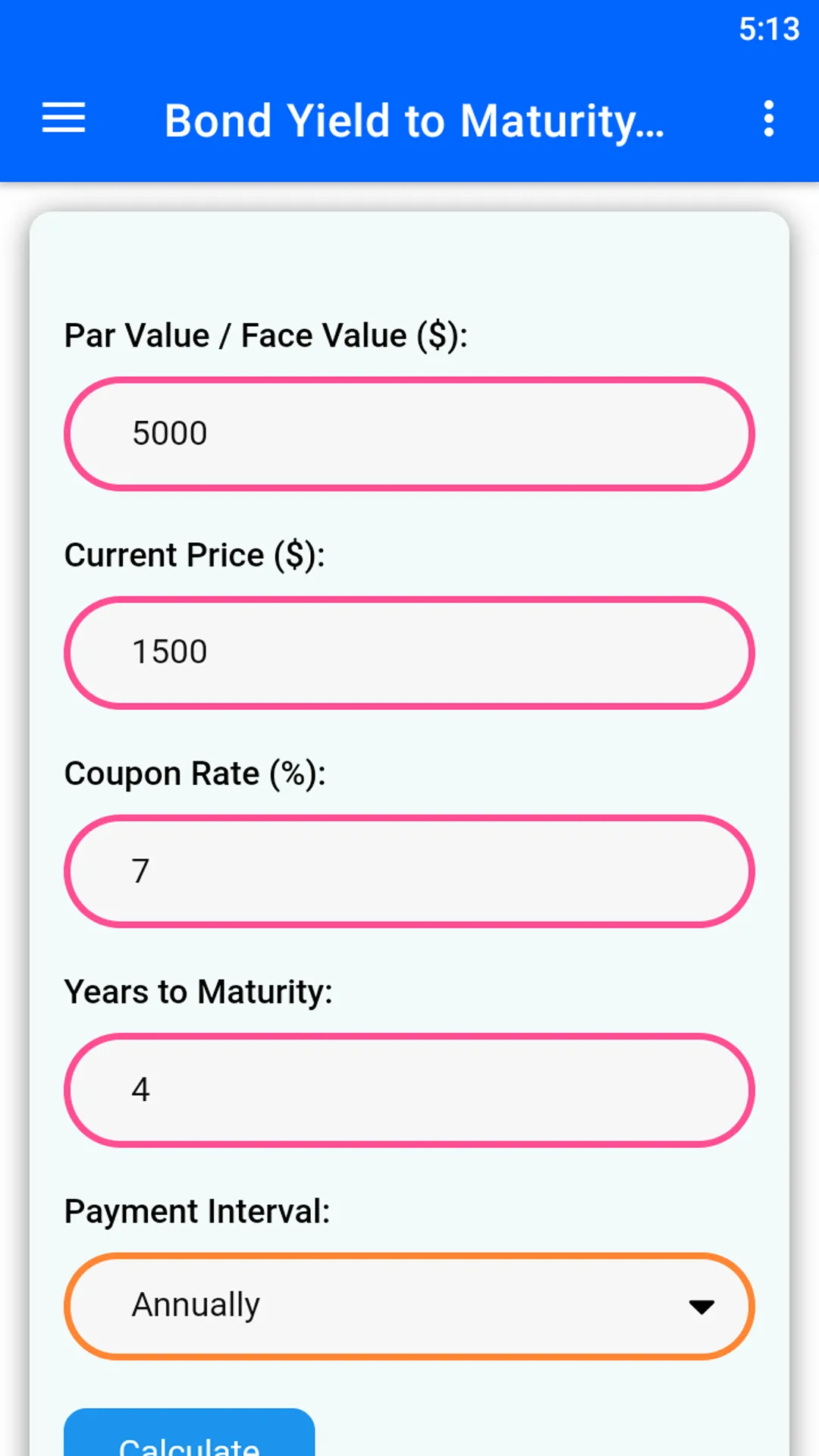 ✨ Bond Yield to Maturity Calculator – Your Essential Tool for Bond Investment Analysis Are you an investor or someone looking to understand bonds better? Our Bond Yield to Maturity Calculator simplifies the process of calculating bond yields. Whether you're assessing the return on bonds or planning your next investment, this app helps you quickly calculate bond yield to maturity (YTM) and other important bond metrics. ✨ What Can You Do With the Bond Yield Calculator?...