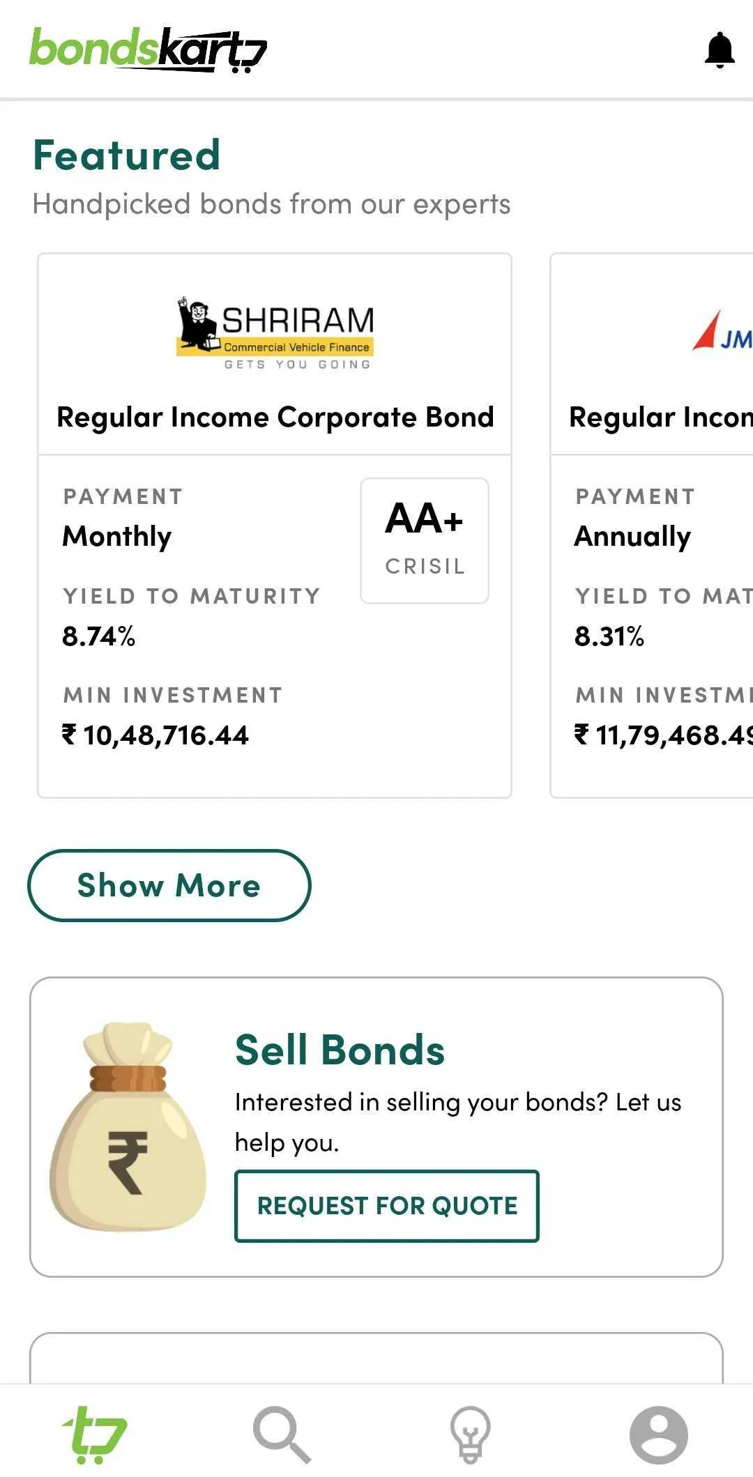 BondsKart is India’s first intuitive investment platform that brings a rich variety of premium bonds and debentures to retail investors, in a matter of just a few clicks. Our investors are offered exclusive access to our diverse portfolio that curates bonds with promising yields across large investor networks - without compromising on the ease of buying and selling. We house only top-notch securities, ranging from AA to AAA ratings, ensuring that our investors always have the edge BondsKart’s op...