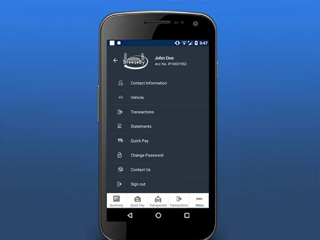 BreezeBy is a free mobile app for BreezeBy electronic tolling customers to access and manage their account quickly and easily. How does it work? BreezeBy helps to manage your electronic tolling account. You can add money, order transponders, add or remove vehicles, change your contact info or payment method and track toll trips. The BreezeBy app works for current customers. Highlights: 1. Easy access to your BreezeBy account....