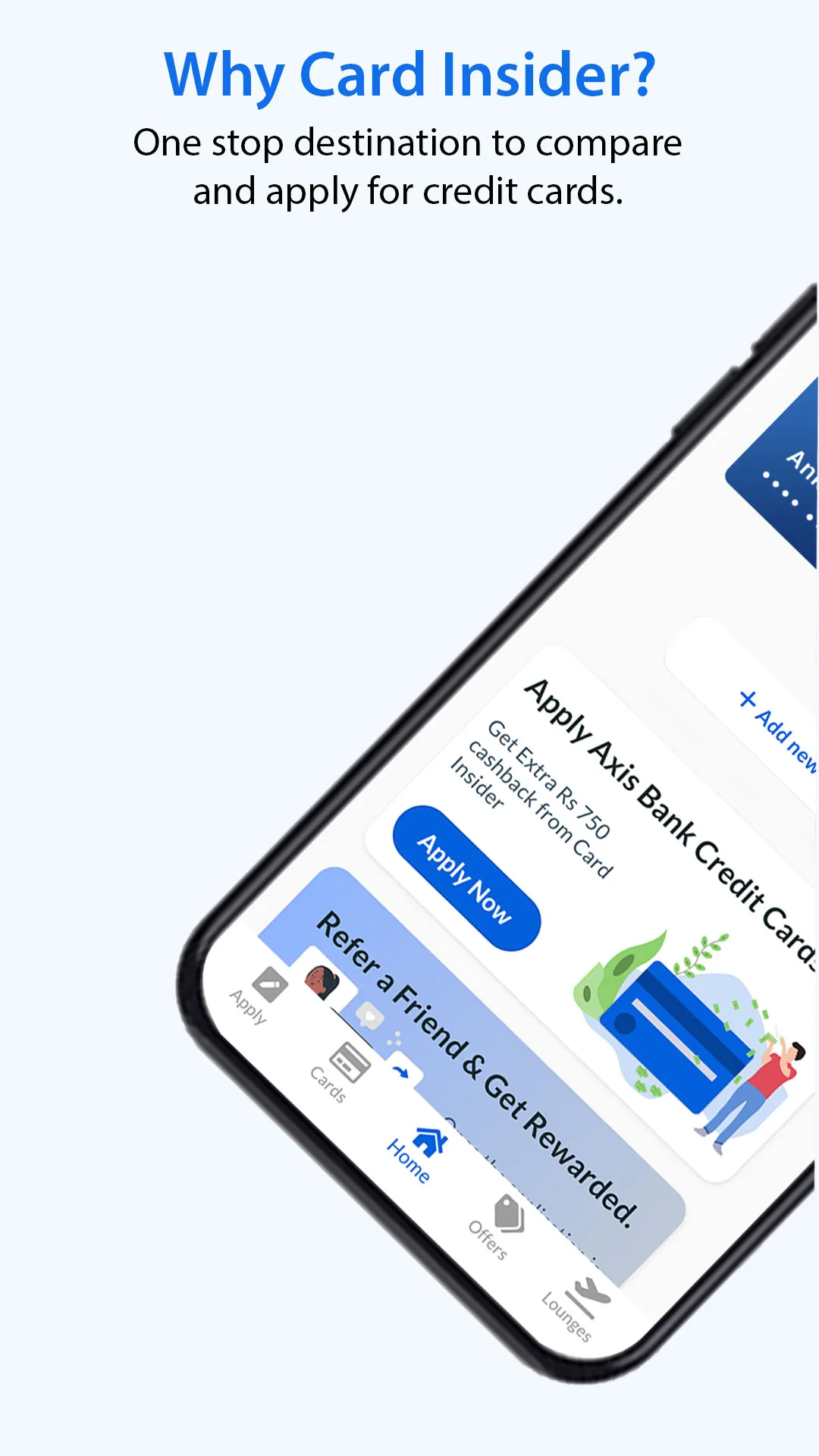Card Insider redefines the credit card application process for you, making applying for credit cards online a seamless, hassle-free and rewarding experience. From super-premium and lifestyle credit cards to travel and dining cards, you can view the features and benefits like credit card deals and offers, airport lounges of over 500 credit cards currently available in the Indian credit card market and apply for the one that fits your needs the best. Not just that, you also get cashback every time you apply for a credit card through Card Insider (subject to application approval by the card issuer). Card Insider is the only app you will ever need for anything and everything related to credit cards- from simplifying the credit card application process to credit card guides and credit card offers, we’ve got you covered for all your credit card needs. What makes us stand apart? ...