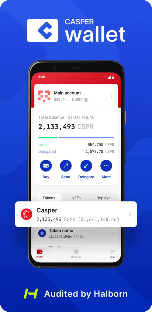 Securely manage your CSPR tokens and interact with dapps with the self-custody wallet for the Casper blockchain. Casper Wallet is the go-to self-custody wallet for the Casper blockchain, designed to make it easy and secure for you to store, manage, and transfer your CSPR tokens, to interact with dapps on the Casper Network, and to sign transactions. Our wallet is optimized for the Casper blockchain, giving you full access to its features and capabilities. Key features: - The official wallet for the Casper blockchain, supported by most dapps - Secure storage and management of CSPR and CEP-18 tokens - Audited by Halborn ...