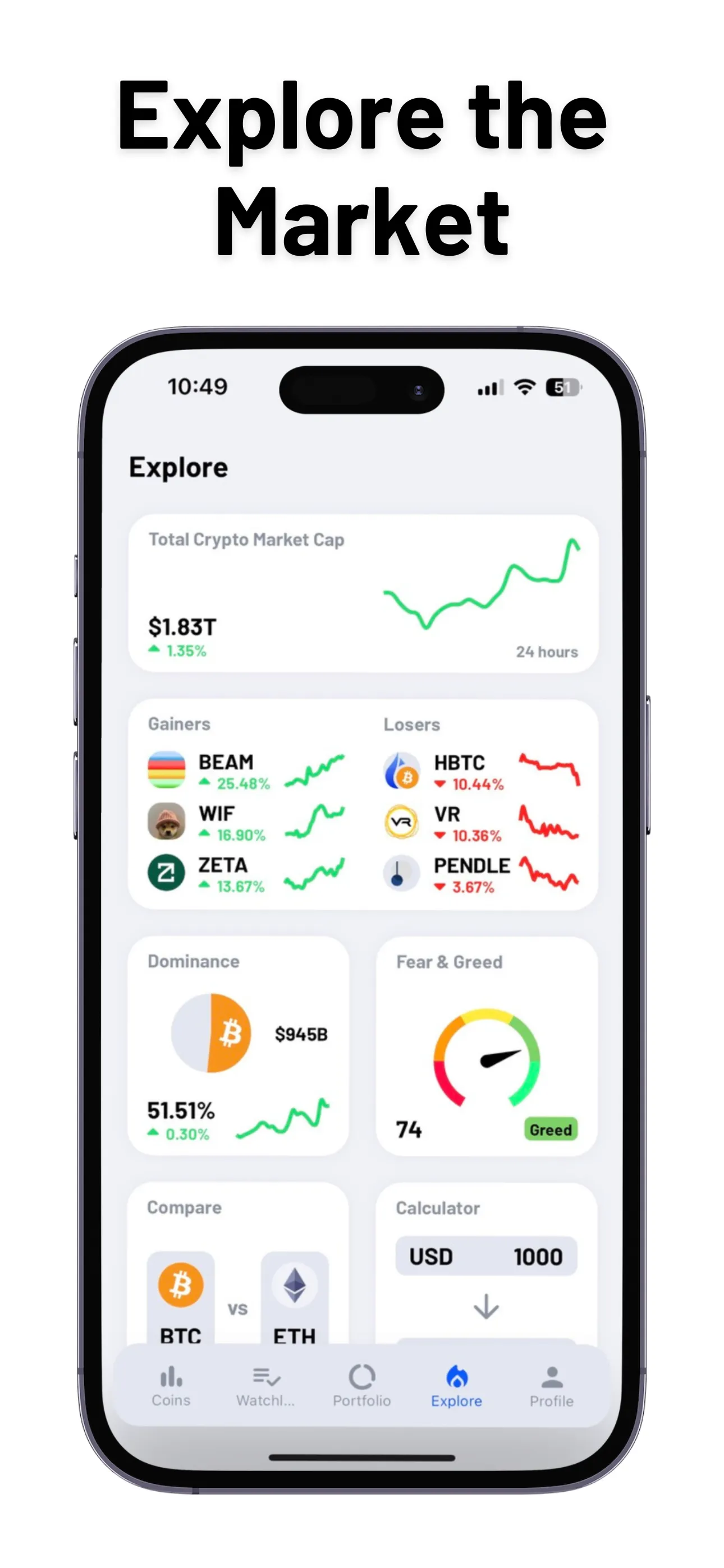 Track all cryptocurrencies in one app. Explore all the latest prices, interesting information about each cryptocurrency and much more. With Coin Portfolio you can track your portfolio, put your favorite coins on a watchlist and set your own price alerts. All this in a simple, fast and easy to use app, 100% free & without ads! 📈 TRACK CRYPTO PRICES With Coin Portfolio you can track the prices of all cryptocurrencies. For this you can either use the list of all cryptos, or use the search to find a specific coin. 🚀 TRACK YOUR PORTFOLIO...