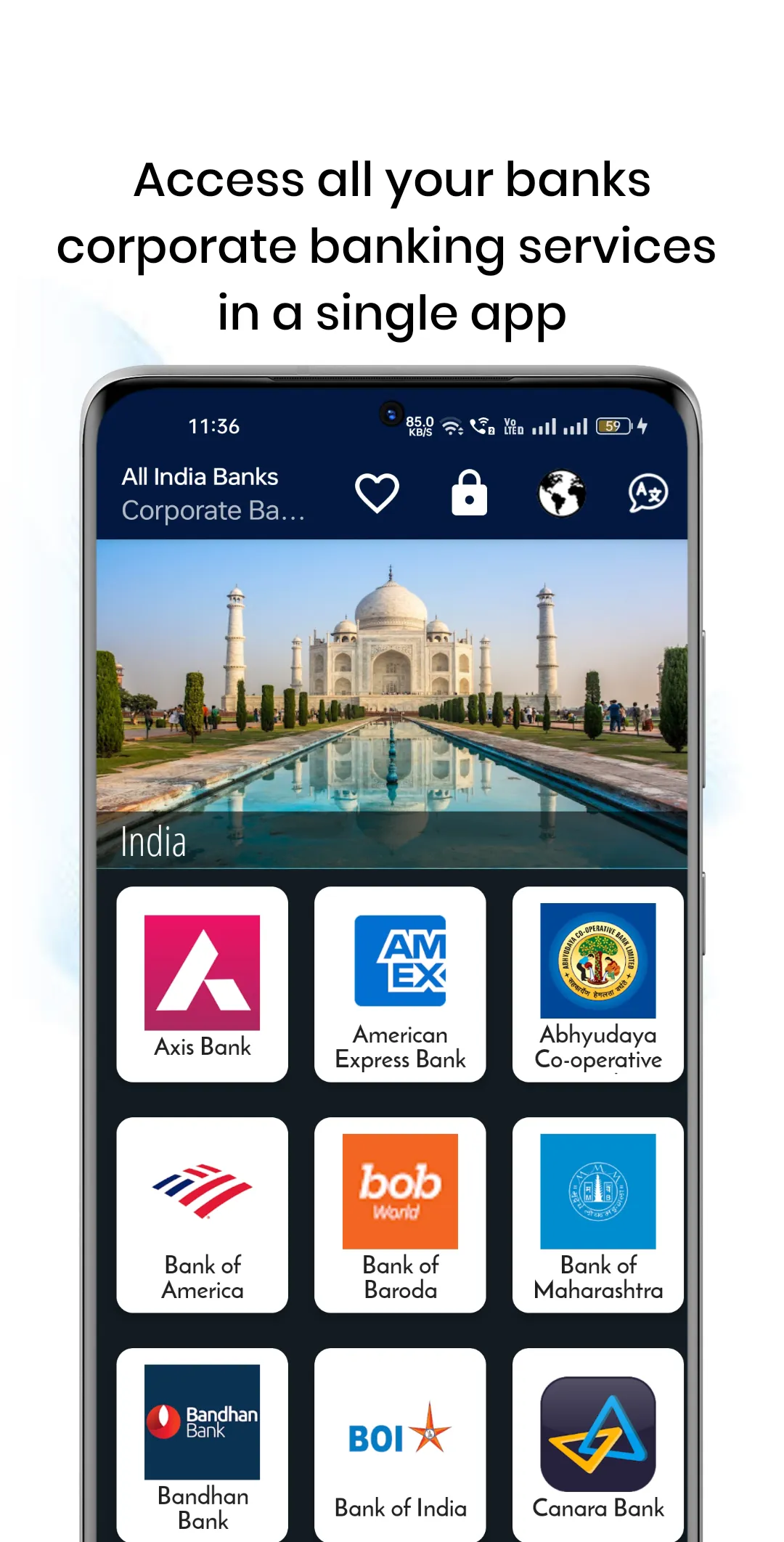 Corporate Banking - All Banks application helps you to access all banks internet banking facility. Our banking app helps to save lot of space by installing each banks app. Banks names are provided in the alphabetical order, so that customer's can pick their bank app quickly. The bank supported are: Axis Bank Corporate Banking American Express Bank Corporate Banking...