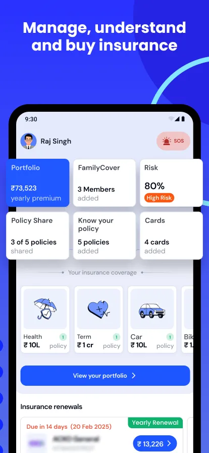 What will you get with the CoverSure App? -A personalised insurance portfolio to easily manage all your insurance policies at one place -FREE review of health insurance, life insurance, motor insurance -Your personalised risk monitor to protect you at all times -Understanding of what’s covered and not covered in your insurance -Vehicle management services...