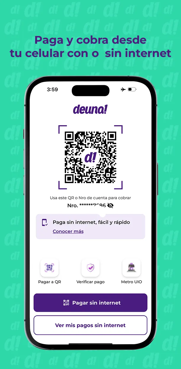 Make your financial life easier with Deuna 🚀 Manage your money from your cell phone and organize your daily or weekly budget in the best way. Forget about spare parts and cash. With Deuna, you have a digital account to pay instantly and keep your money always safe. What can you do with Deuna? ...