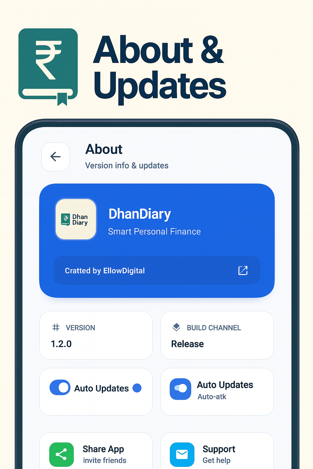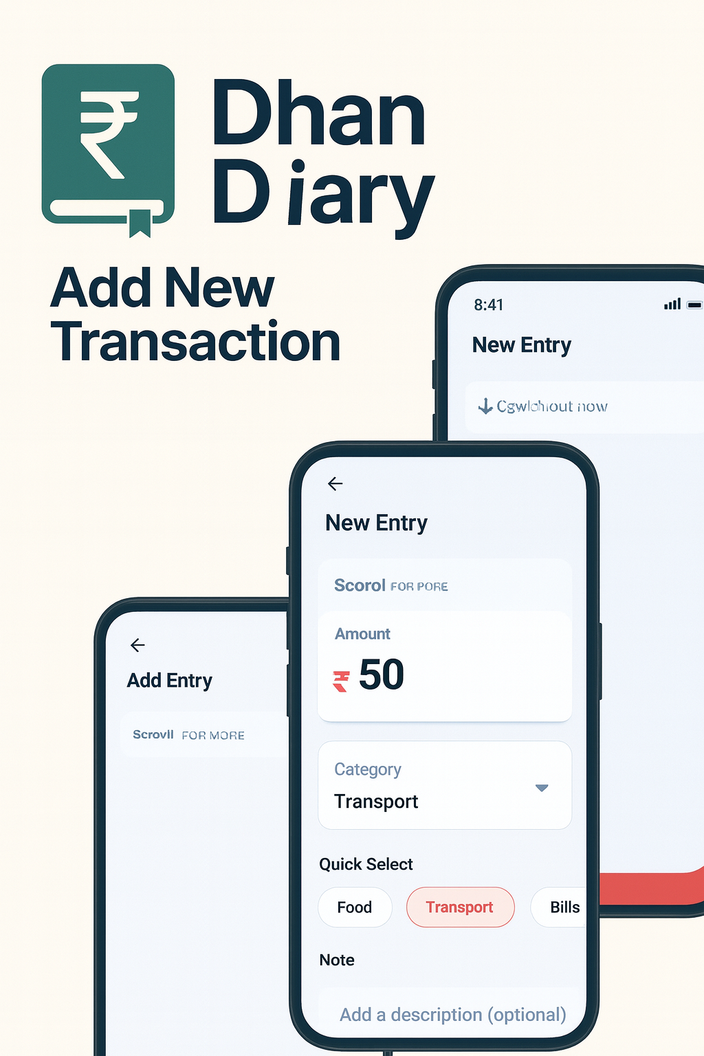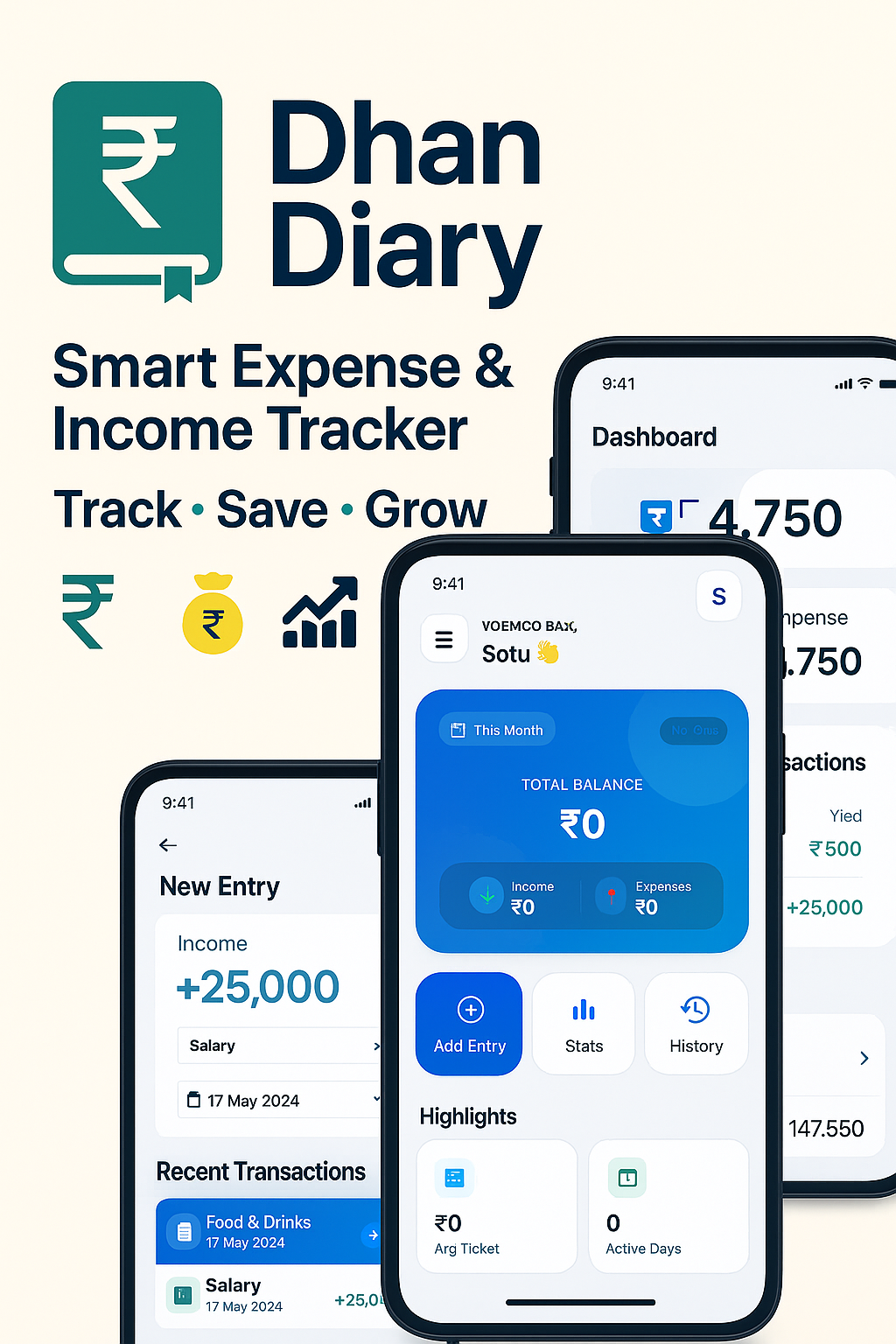 DhanDiary – Smart Expense & Income Tracker is a simple, fast, and reliable personal finance app designed to help you manage your daily money flow with ease. Whether you want to track expenses, record income, measure savings, or check your spending habits, DhanDiary keeps everything organized in one place. You can quickly add Cash In and Cash Out entries, choose categories, add notes, and instantly view your complete transaction history. The clean and modern interface makes the app easy for anyone to use—students, professionals, freelancers, shop owners, and families. Your financial data is securely stored and remains private. DhanDiary is lightweight, works smoothly on all Android devices, and does not require any complex setup. ...