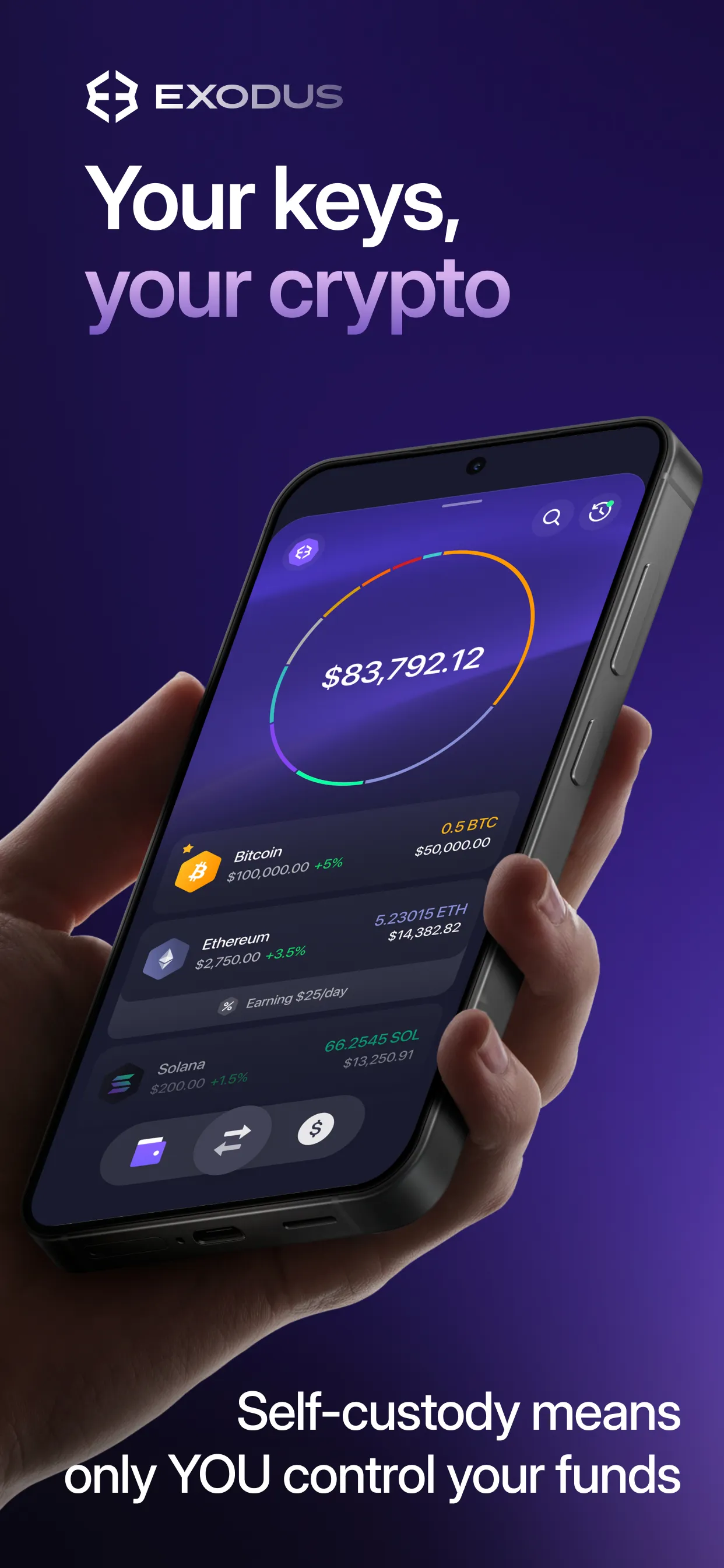 Exodus: one secure wallet for all your crypto—Bitcoin, Ethereum, USDT, Polygon, and more. Buy, send, and manage seamlessly with an intuitive design. Whether you’re a newbie or pro, take control of over 1M+ assets with the world’s leading all-in-one crypto wallet. Key Features: 🔑 Effortless Crypto Transfers...